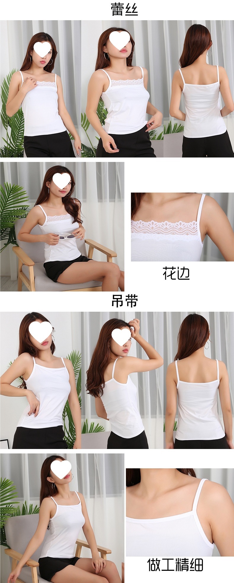 하나의 무료 캐미솔 하나를 구입 여성 슬림 핏 아름다운 백 여름 착용 화이트 레이스 내면베이스 셔츠 대외 무역 세대스토어 가기