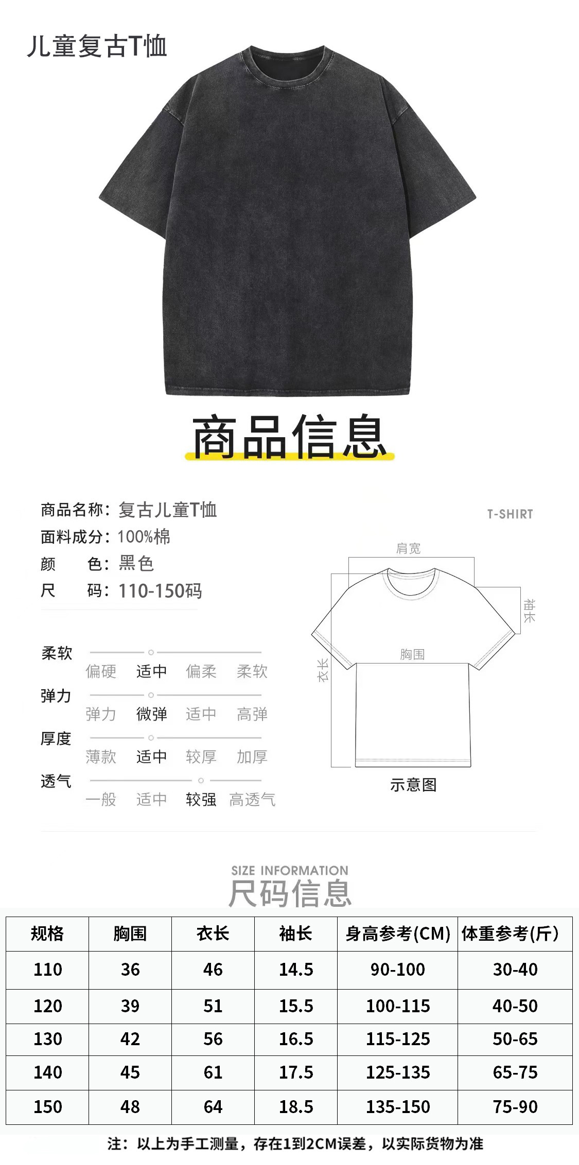 230g 어린이 티셔츠면 무거운 고민 반팔 티셔츠 바틱 세척면 복고풍 티셔츠 패션 브랜드 유럽과 미국 스타일