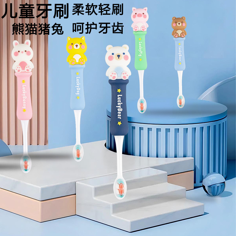 제조 업체 도매 어린이 칫솔 부드러운 강모 청소 고밀도 칫솔 3-12 세 만화 팬더 돼지 토끼 긴 가정용스토어 가기