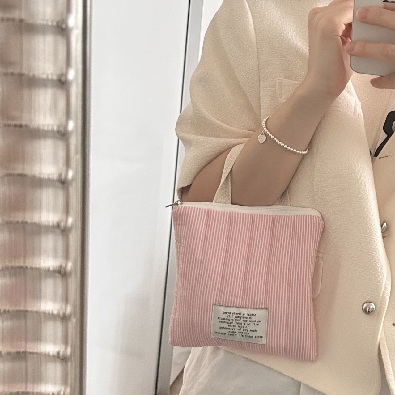 • 핑크 스트라이프 휴대폰 가방