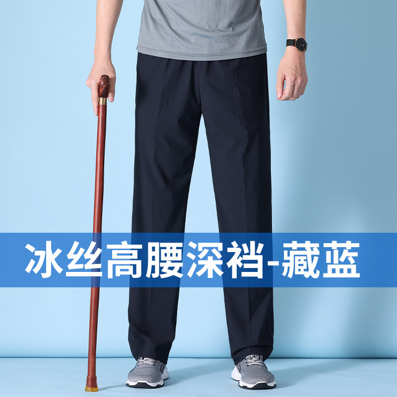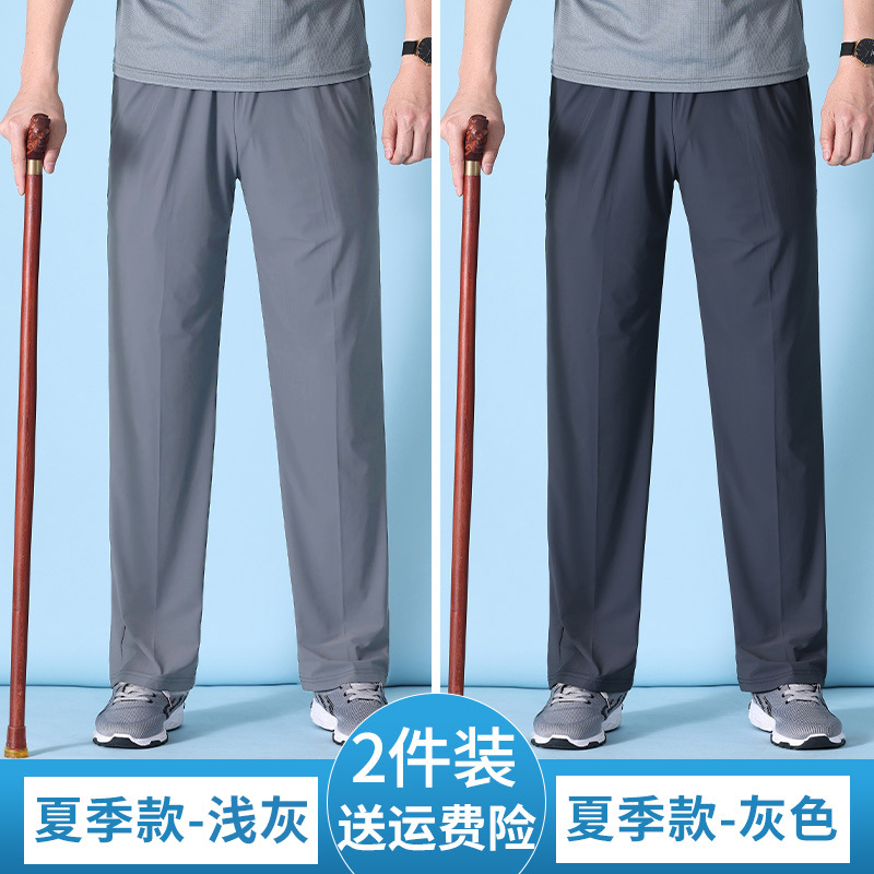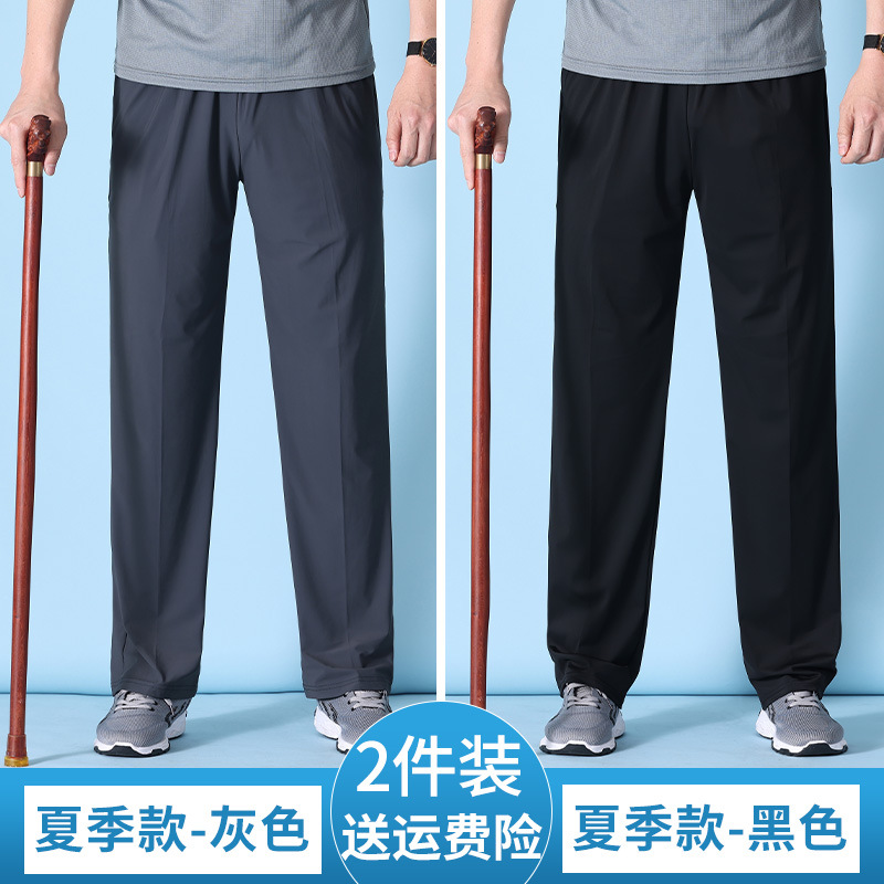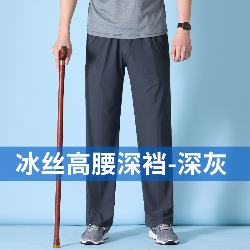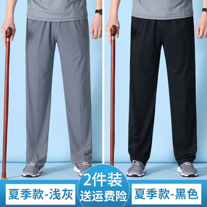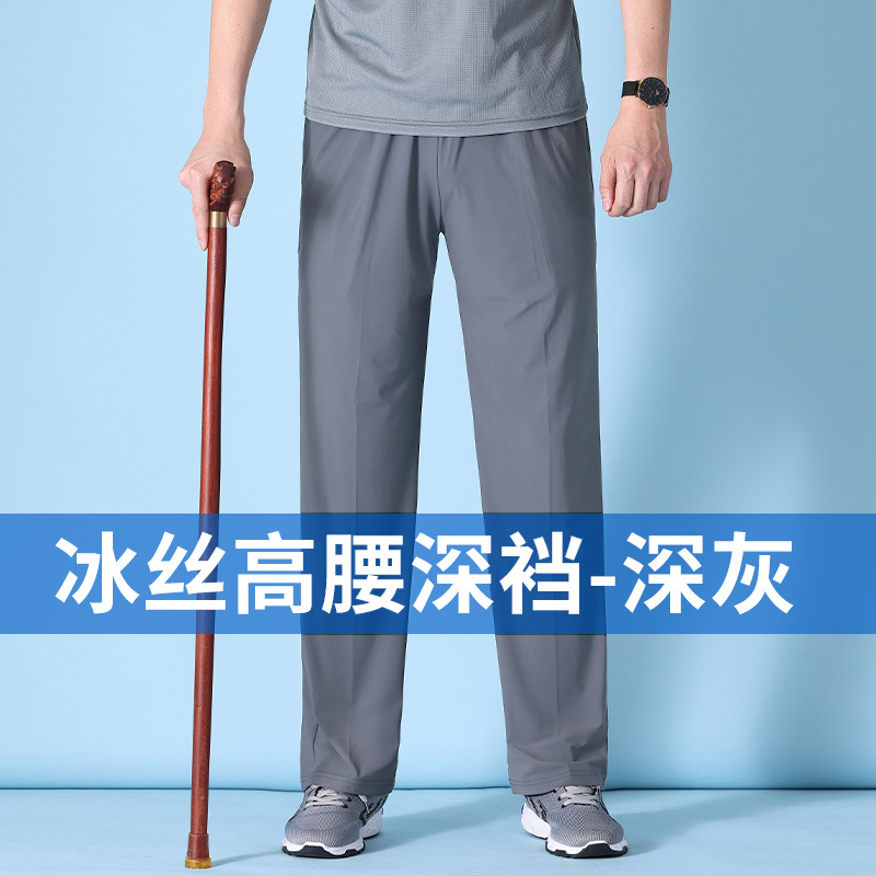 노인 남성 봄 밴드 여름 얇은 아빠 캐주얼 스포츠 바지 남성 아이스 실크 노인을위한 남성 바지