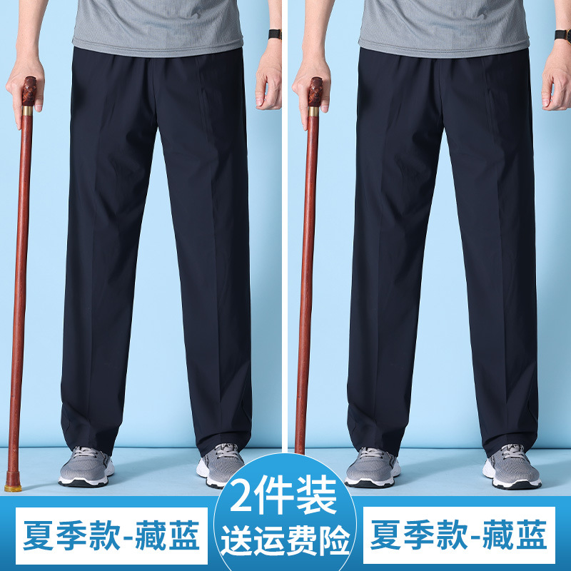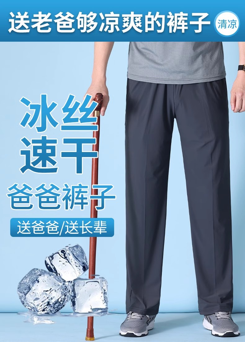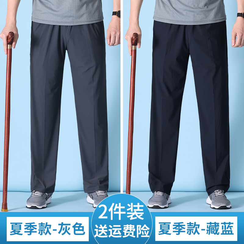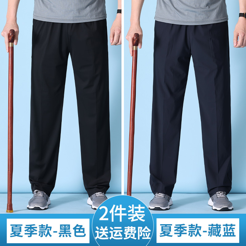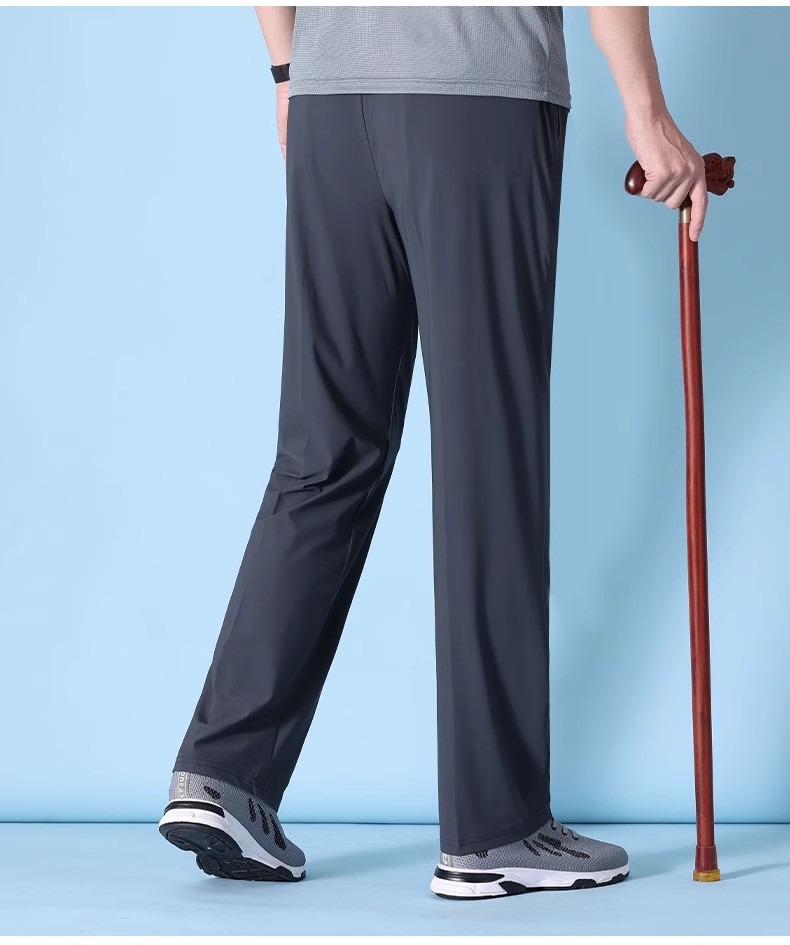 노인 남성 봄 밴드 여름 얇은 아빠 캐주얼 스포츠 바지 남성 아이스 실크 노인을위한 남성 바지