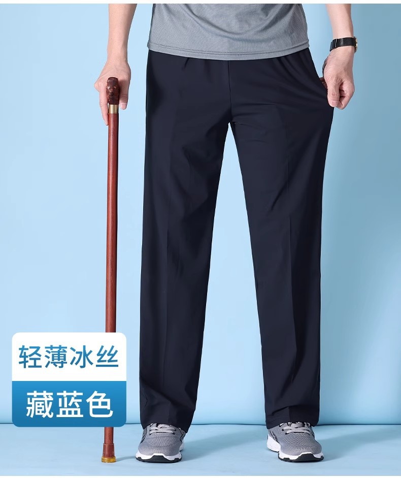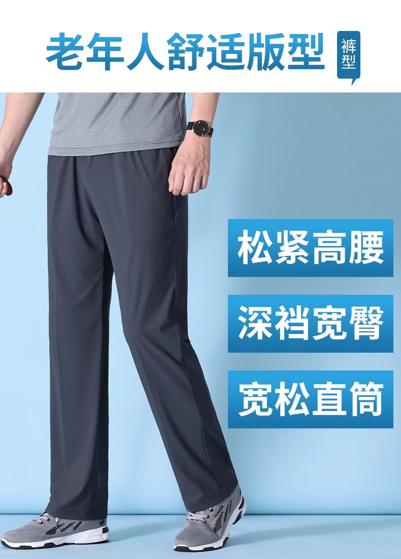 노인 남성 봄 밴드 여름 얇은 아빠 캐주얼 스포츠 바지 남성 아이스 실크 노인을위한 남성 바지스토어 가기