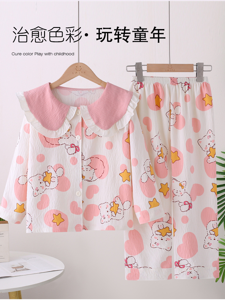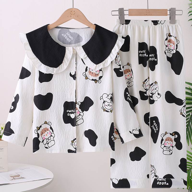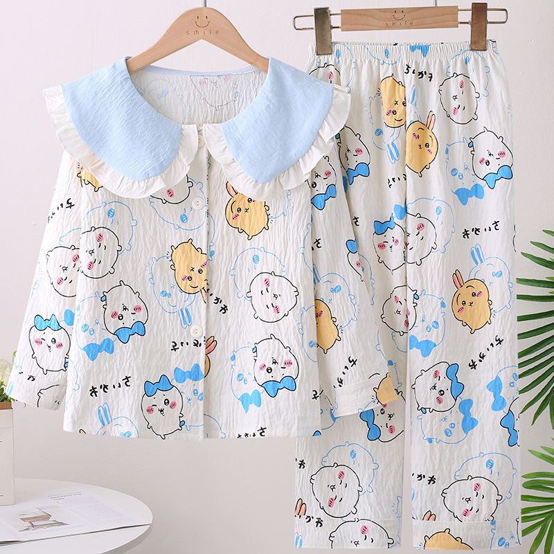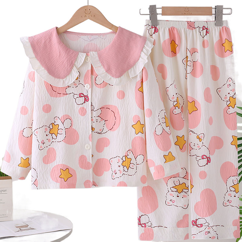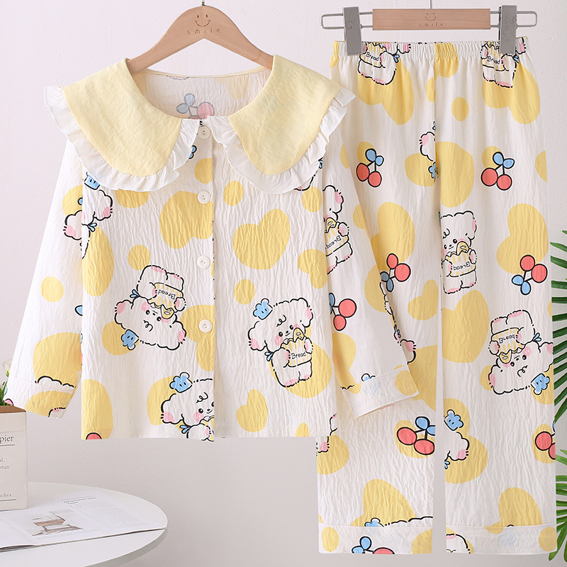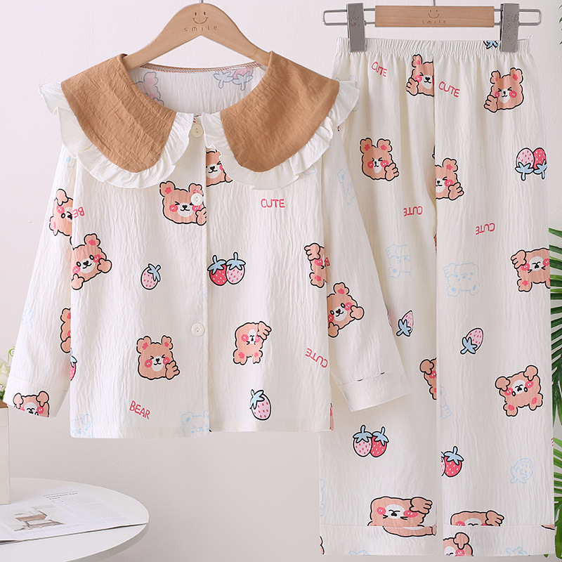 소녀 잠옷 봄과 가을 소녀 아기의 서양식 카디건 인형 칼라 긴 소매 어린이 홈 의류 세트