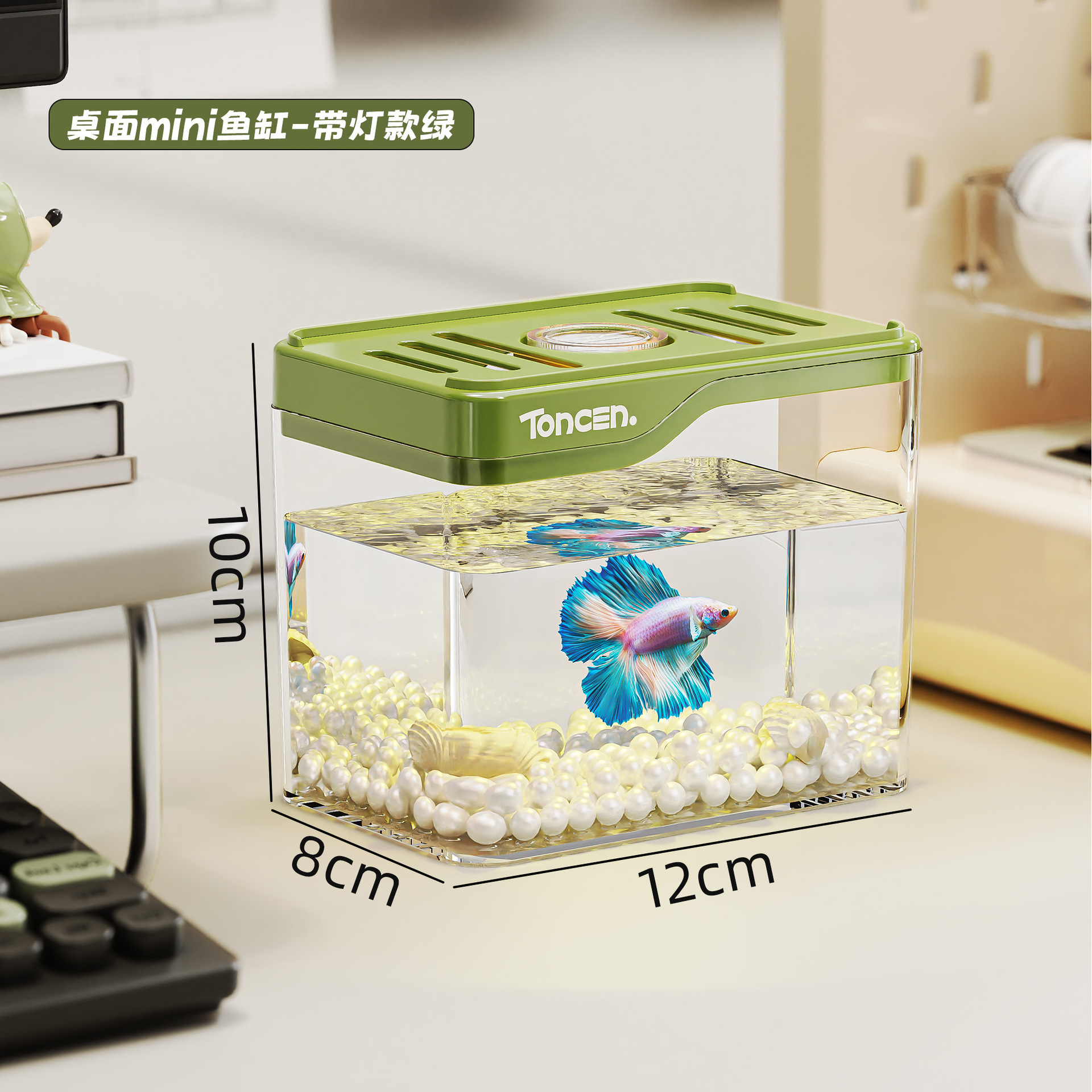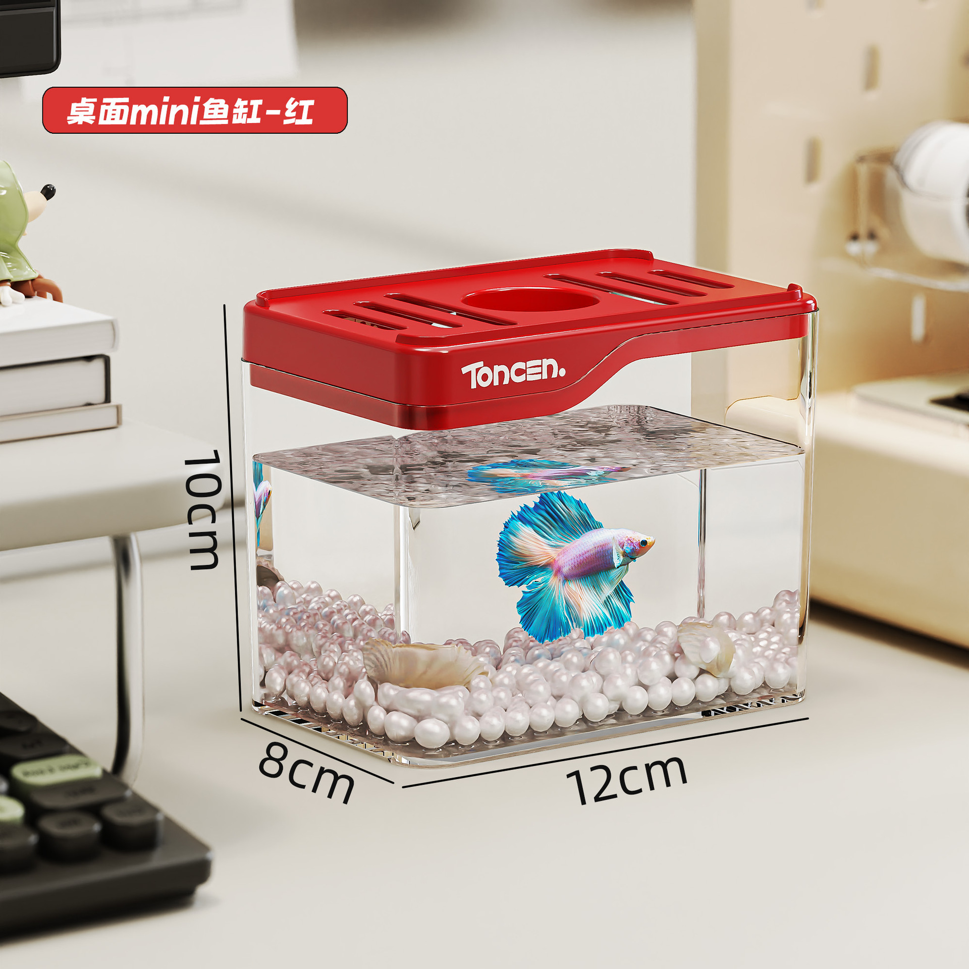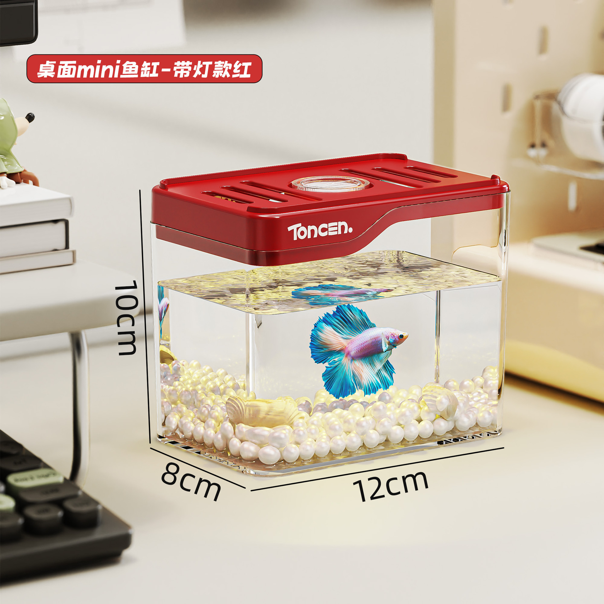 작은 물고기 탱크 데스크탑 플라스틱 투명한 생태 화분 물고기 탱크 통합 관상용 물고기 열대 물고기 양동이 물고기 먹이 상자스토어 가기