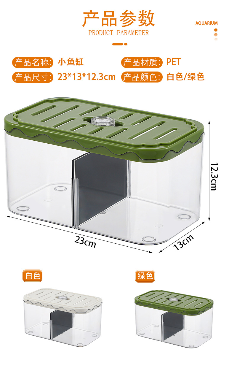 작은 물고기 탱크 데스크탑 플라스틱 투명한 생태 화분 물고기 탱크 통합 관상용 물고기 열대 물고기 양동이 물고기 먹이 상자