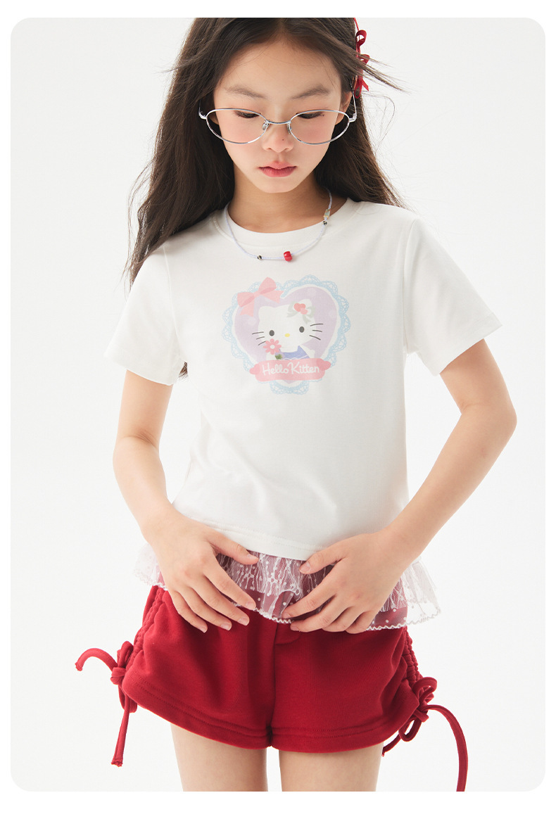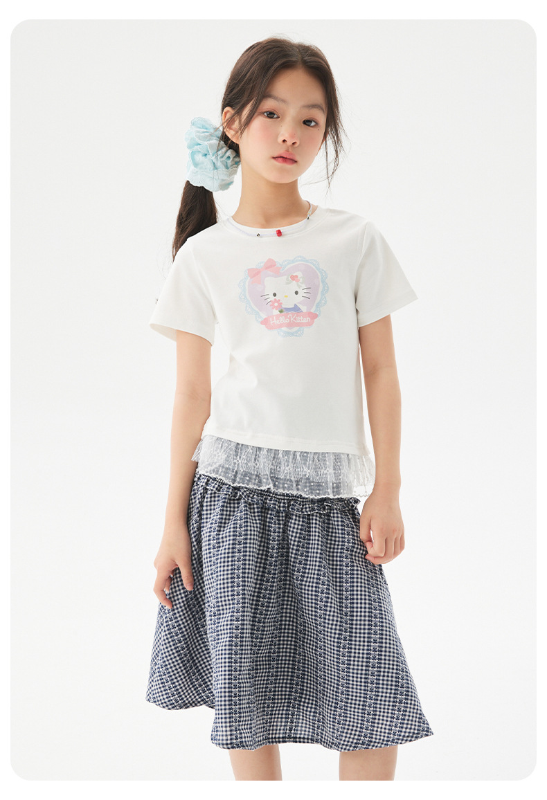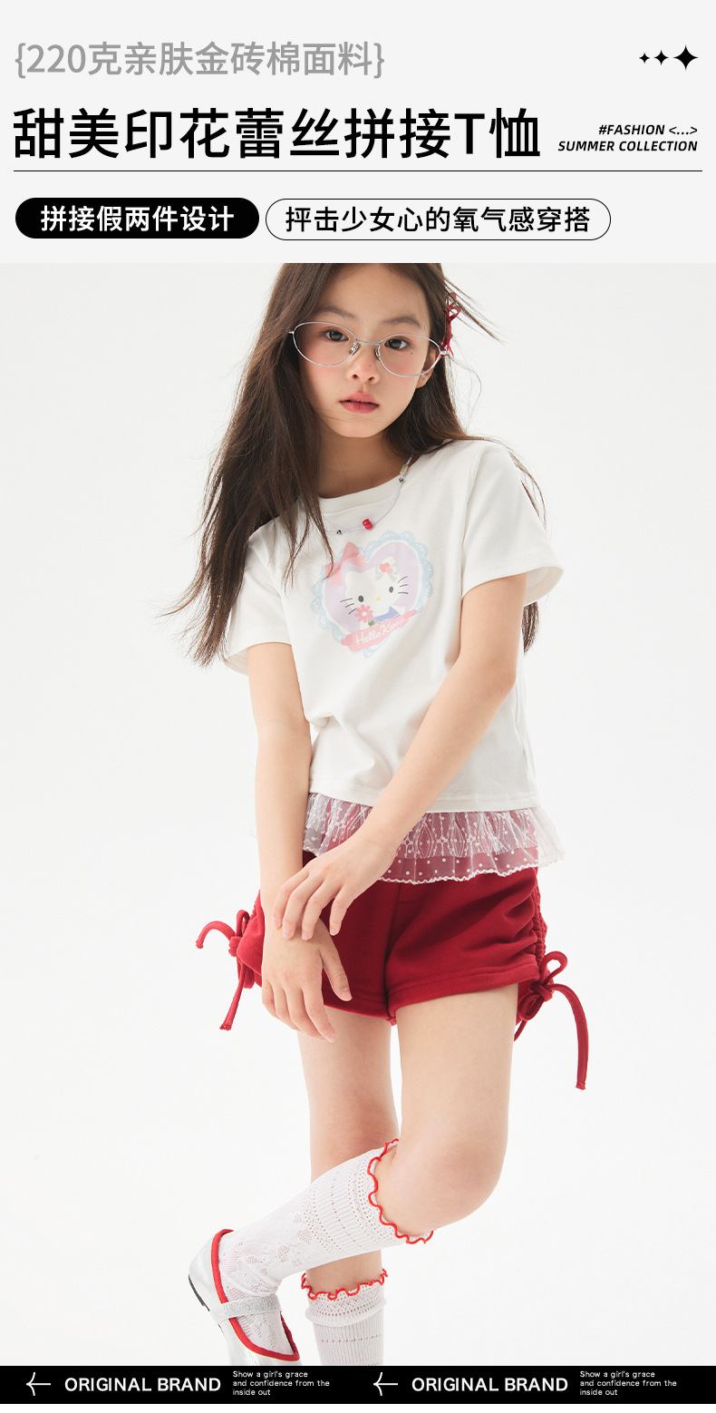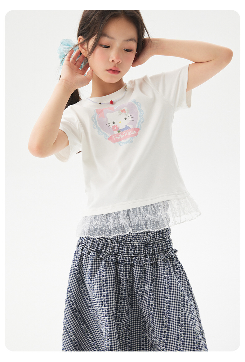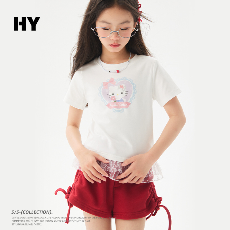 여자 레이스 티셔츠 2025 여름 신작 어린이 한국 스타일 얇은 캐주얼 아동복 중대형 아동 반팔 트렌드