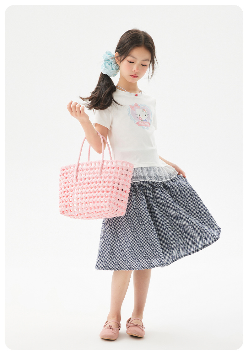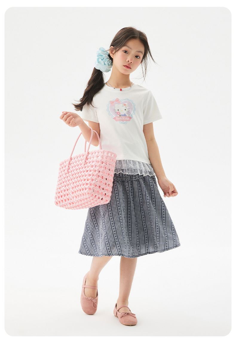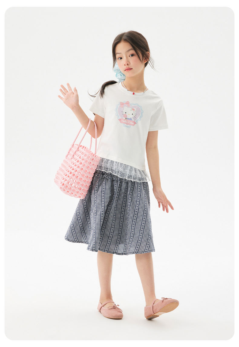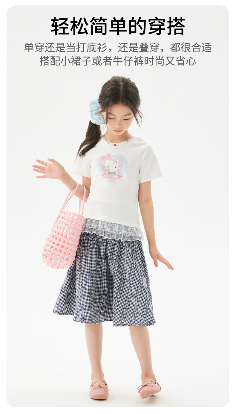 여자 레이스 티셔츠 2025 여름 신작 어린이 한국 스타일 얇은 캐주얼 아동복 중대형 아동 반팔 트렌드