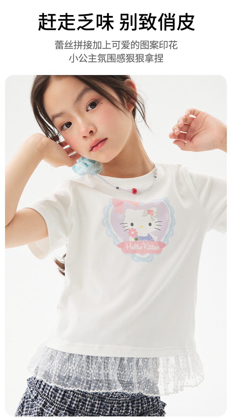 여자 레이스 티셔츠 2025 여름 신작 어린이 한국 스타일 얇은 캐주얼 아동복 중대형 아동 반팔 트렌드스토어 가기