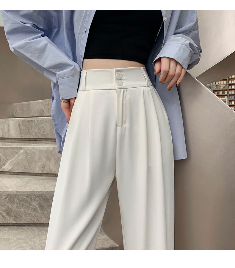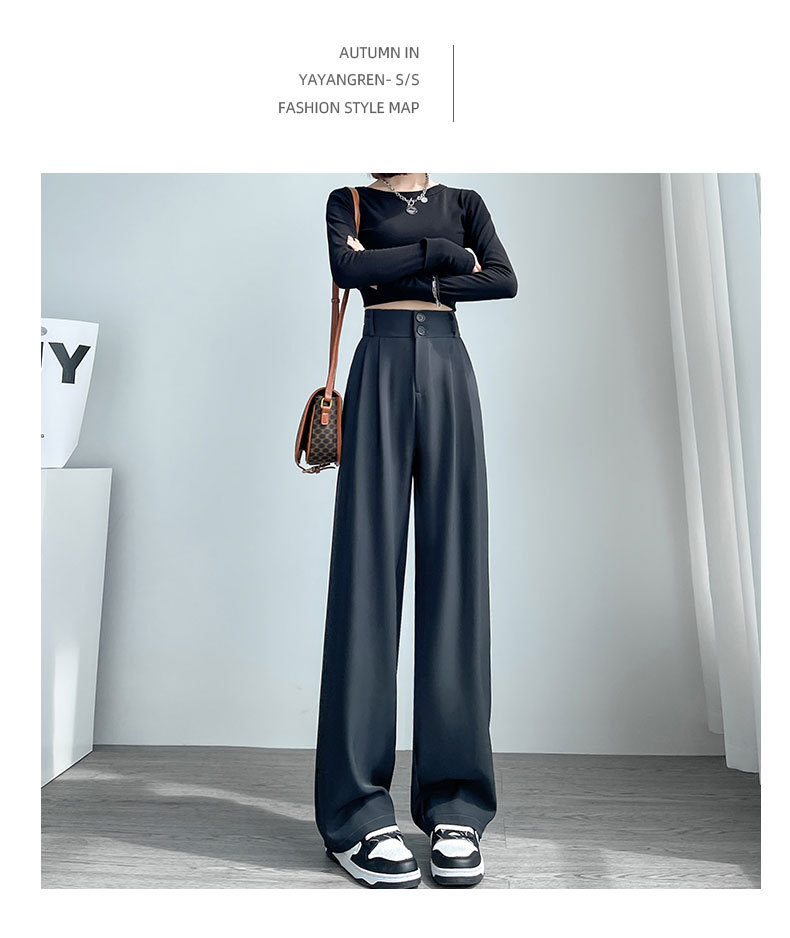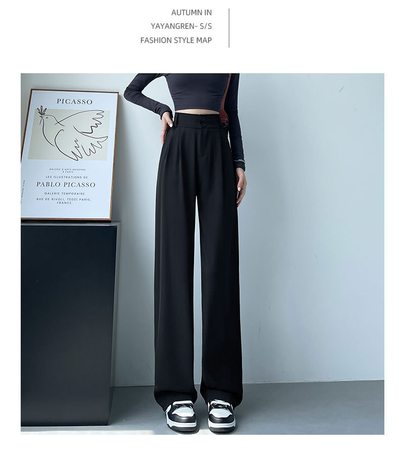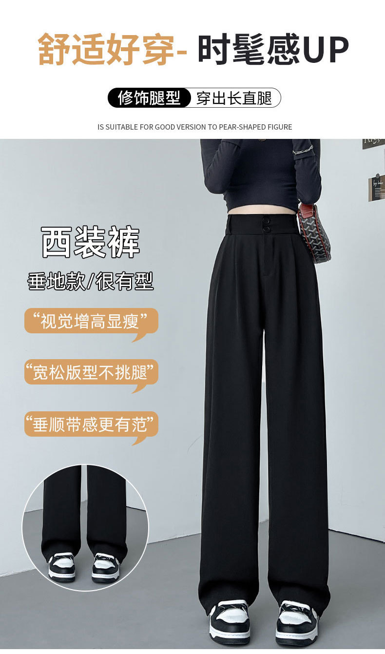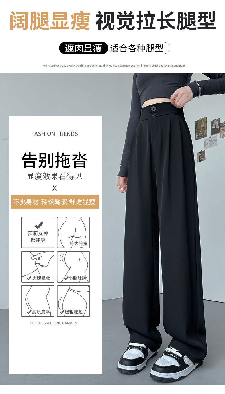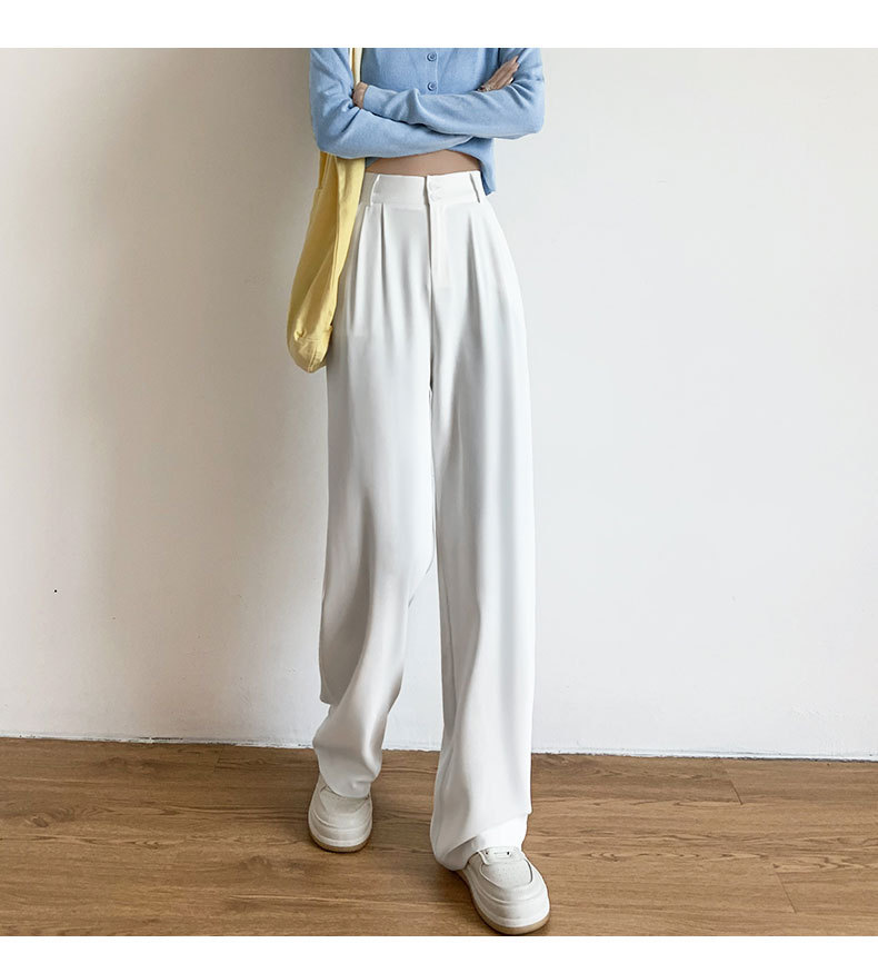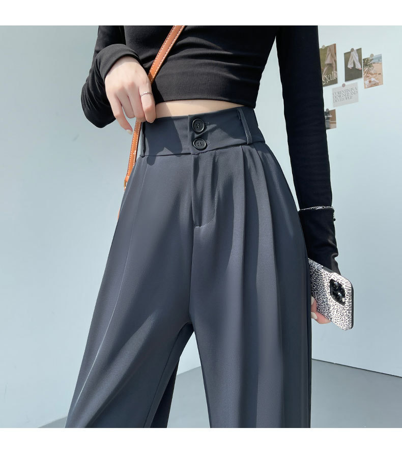 캐주얼 스트레이트 고급 펜던트 세트 바지 여자 2025 년 여름 새로운 높은 허리 펜던트 아이스 실크 와이드 레그 롱 바지