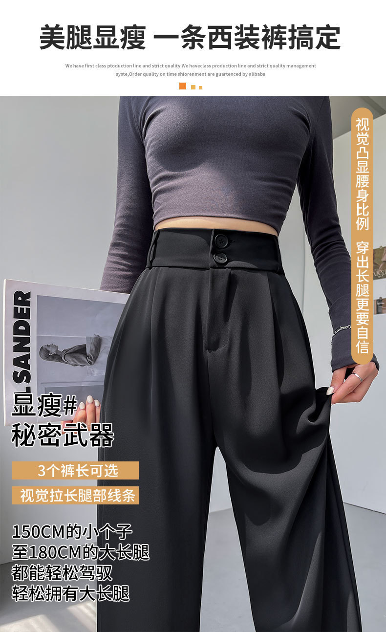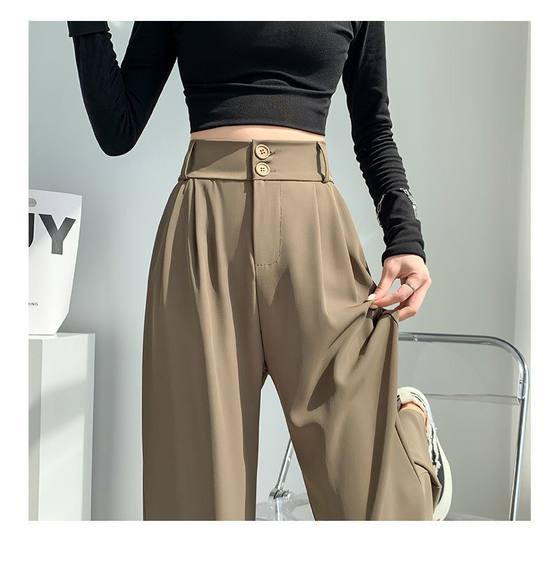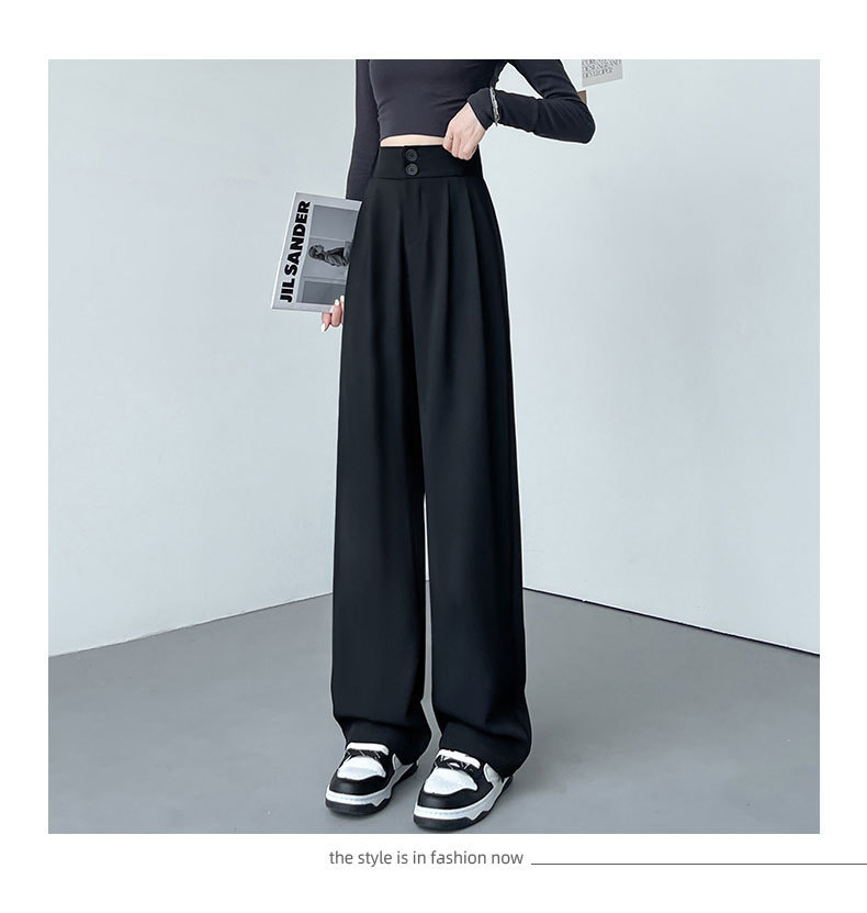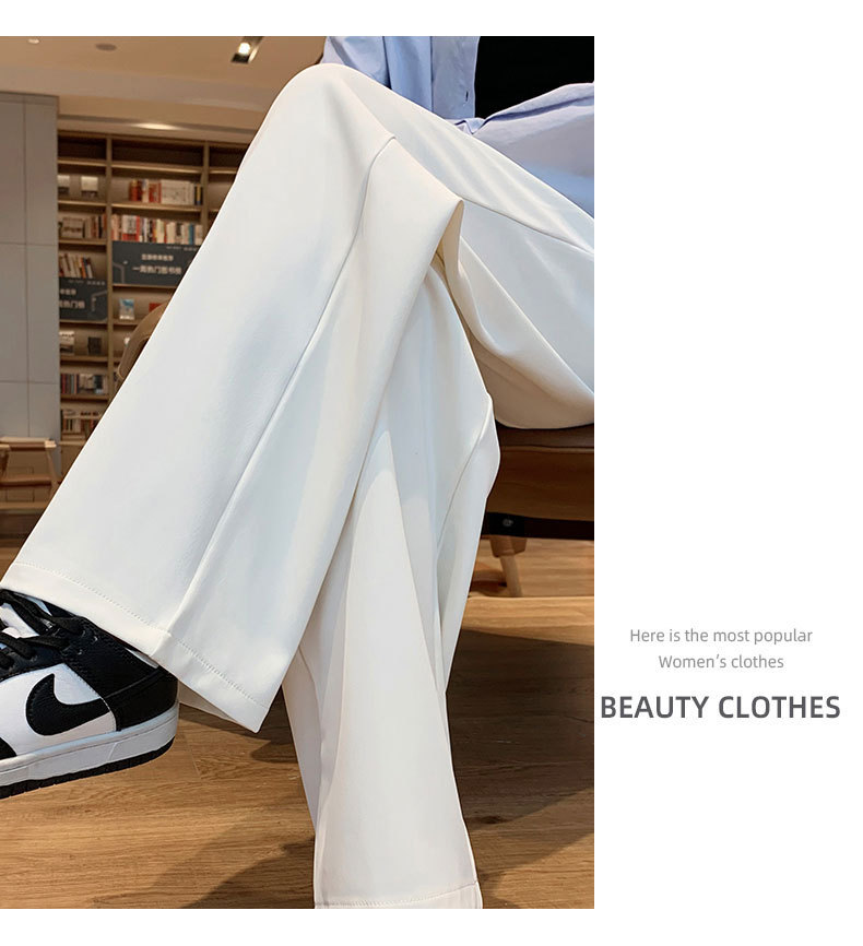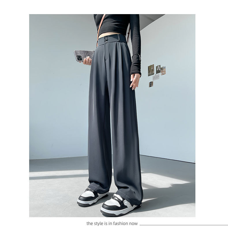 캐주얼 스트레이트 고급 펜던트 세트 바지 여자 2025 년 여름 새로운 높은 허리 펜던트 아이스 실크 와이드 레그 롱 바지스토어 가기