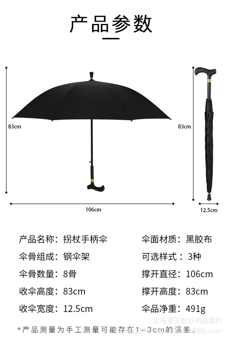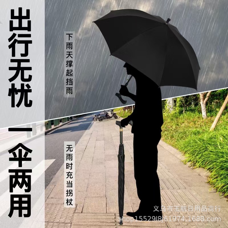 제조업체 도매 23inch 롱 핸들 지팡이 우산 노인 등산 미끄럼 방지 강화 우산 폴리에스터 블랙 글로스 반자동 우산스토어 가기