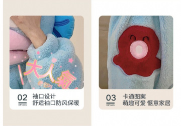 가을과 겨울 여성용 귀여운 추악한 물고기 잠옷 플러스 벨벳 두꺼운 따뜻한 산호 벨벳 잠옷 여성용 만화 재미있는 원피스 홈웨어스토어 가기