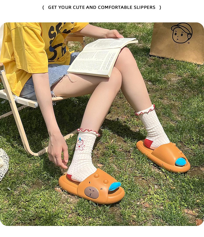 커플을위한 Kapi Bala Shit 슬리퍼 여름 실내 홈 귀여운 만화 남성용 두꺼운 밑바닥 미끄럼 슬리퍼스토어 가기