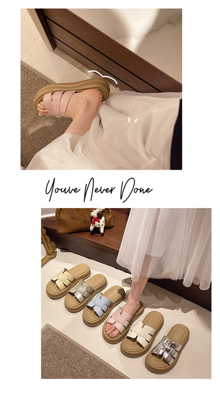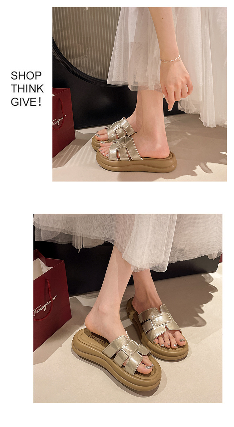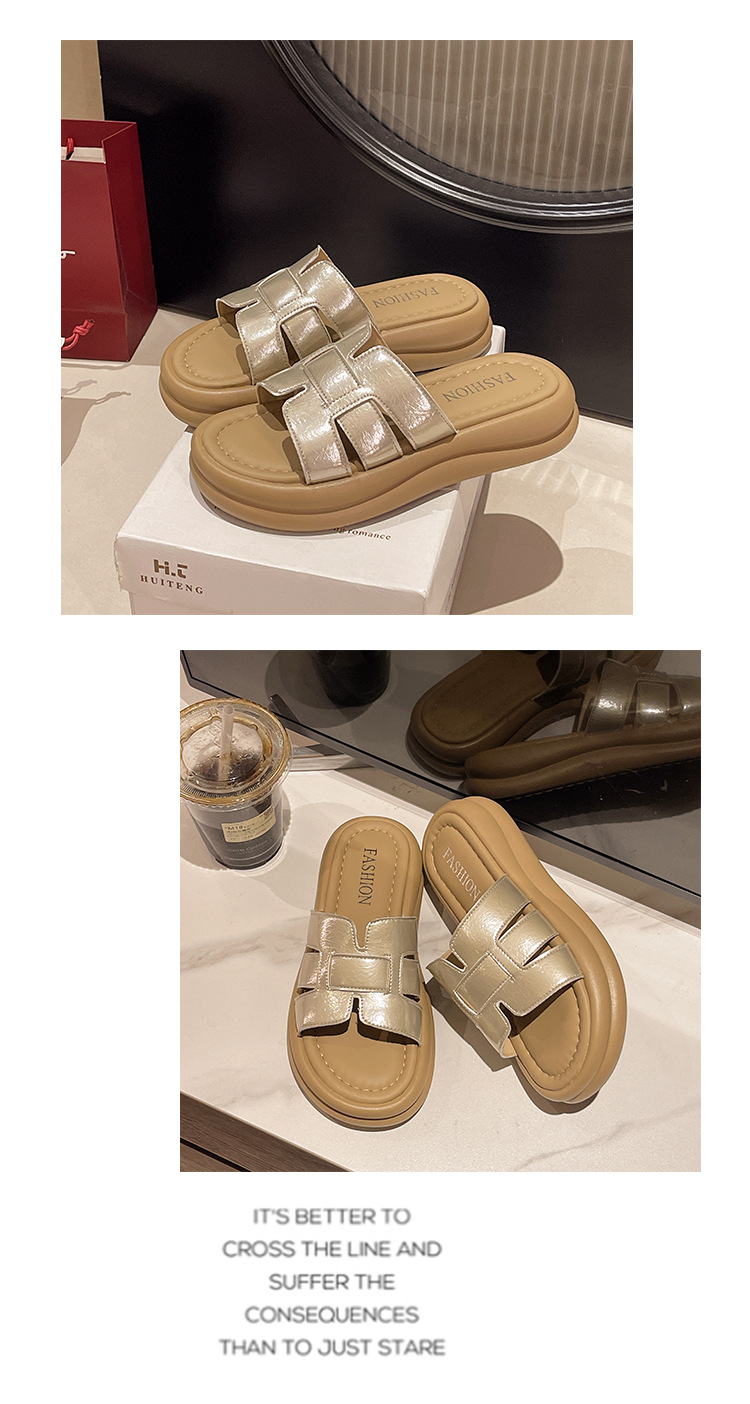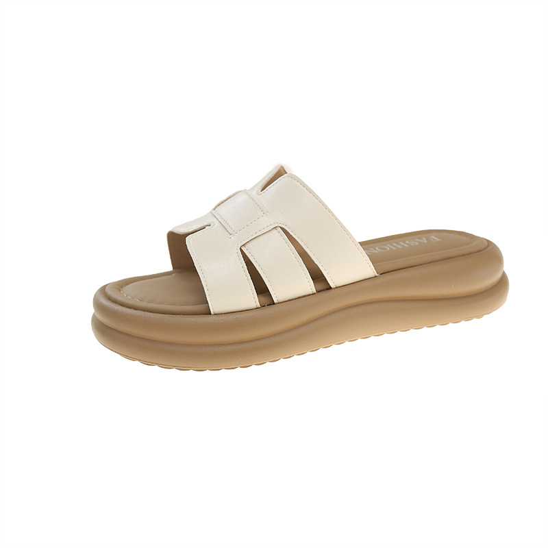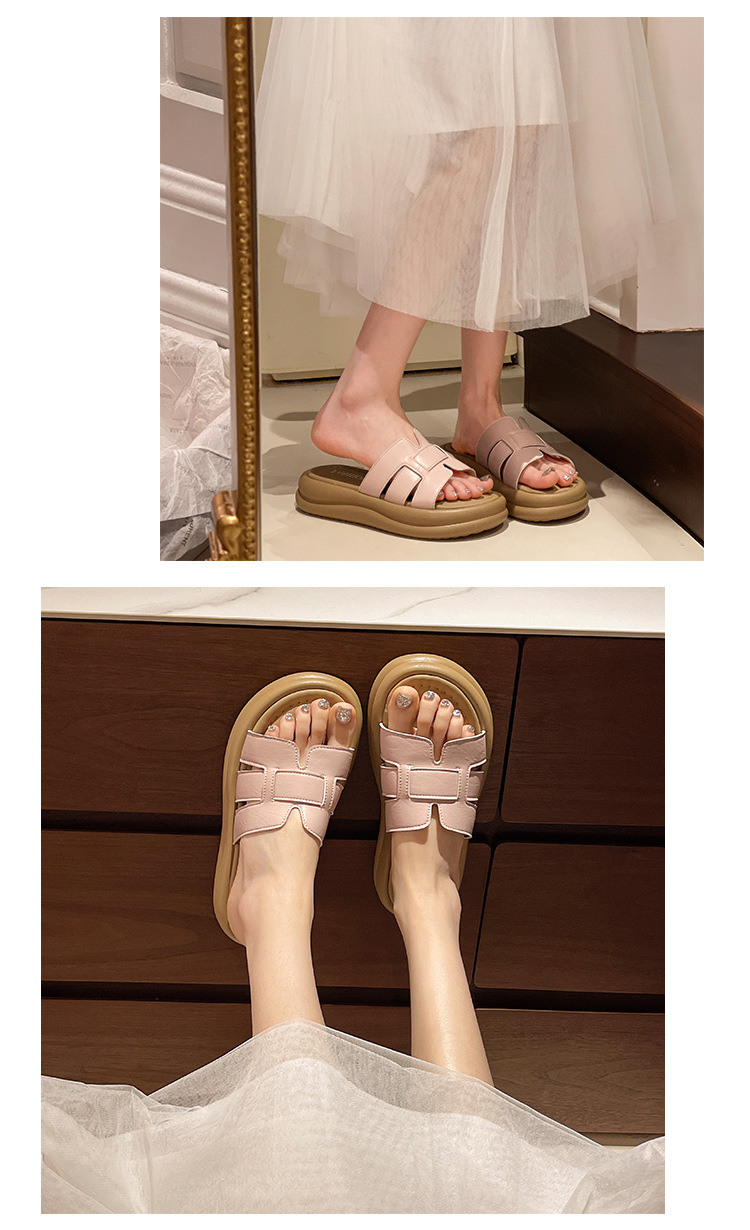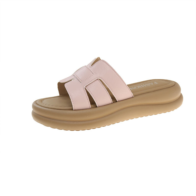 두꺼운 밑창 짠 슬리퍼 여성용 캐주얼 부드러운 밑창 통근 홈 슬립 온 샌들 새 스타일 가죽 샌들