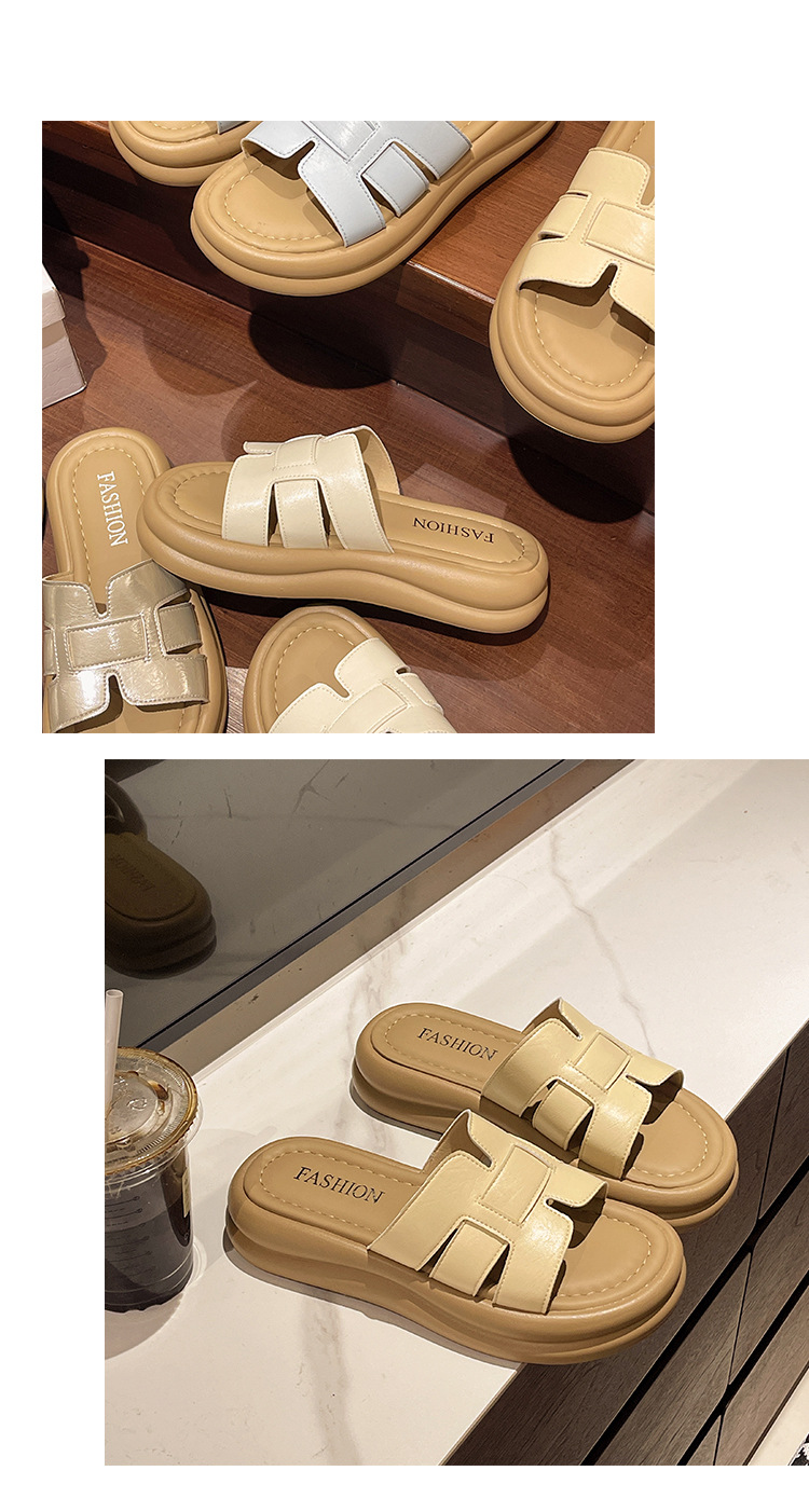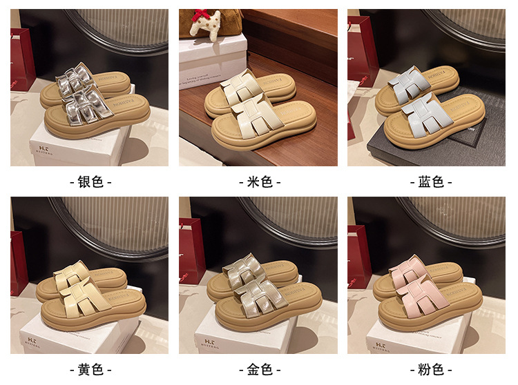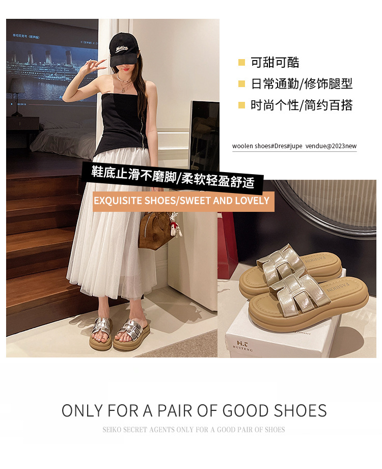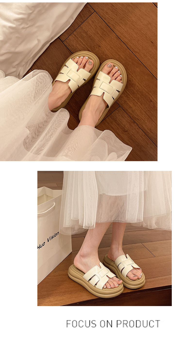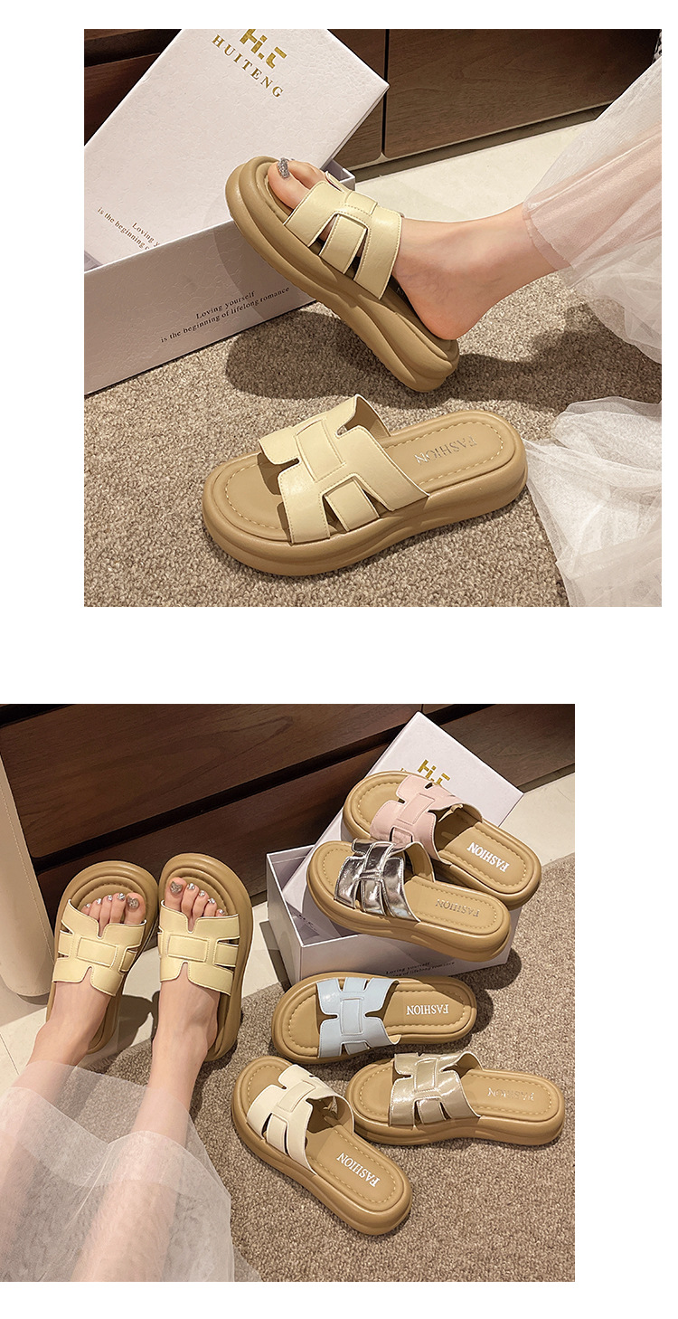 두꺼운 밑창 짠 슬리퍼 여성용 캐주얼 부드러운 밑창 통근 홈 슬립 온 샌들 새 스타일 가죽 샌들