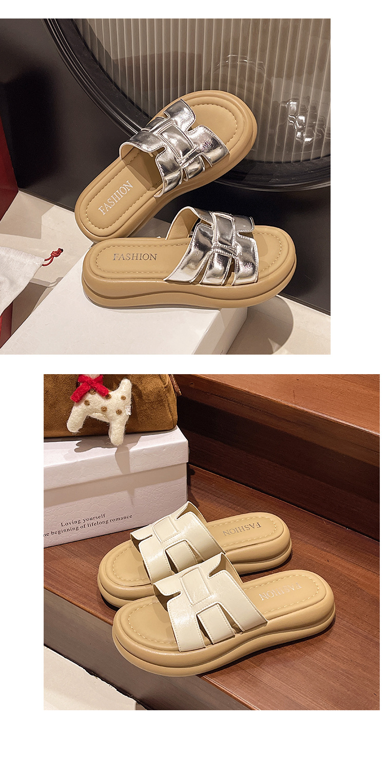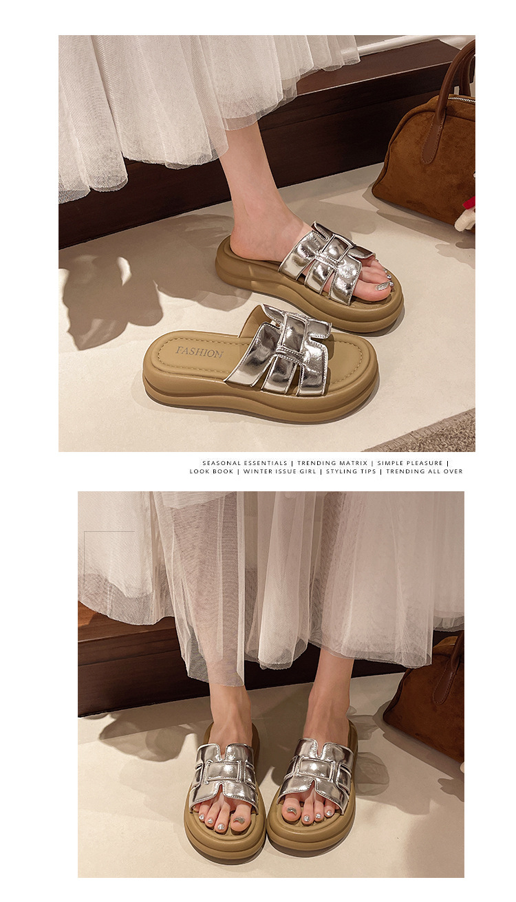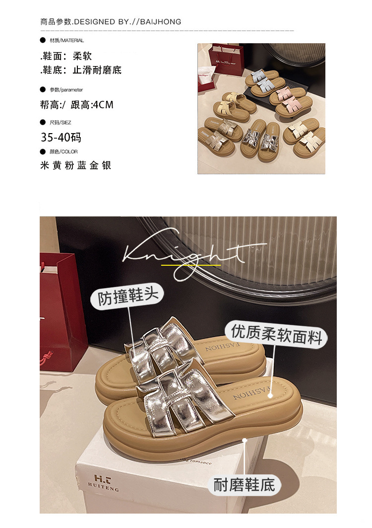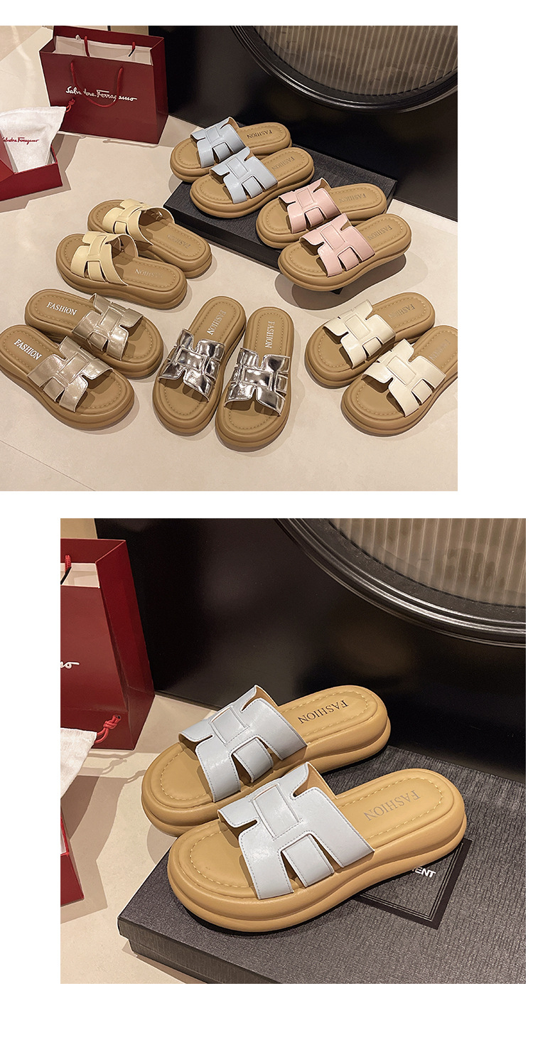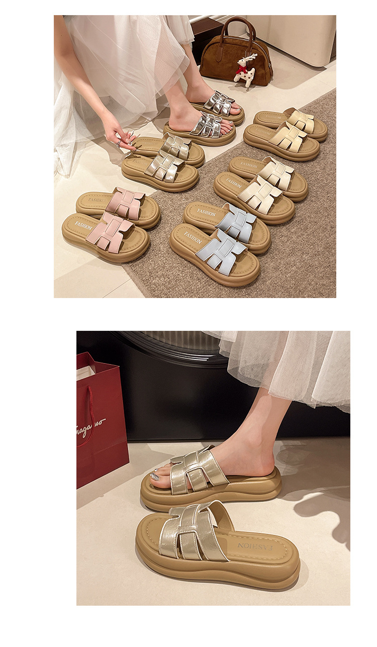 두꺼운 밑창 짠 슬리퍼 여성용 캐주얼 부드러운 밑창 통근 홈 슬립 온 샌들 새 스타일 가죽 샌들