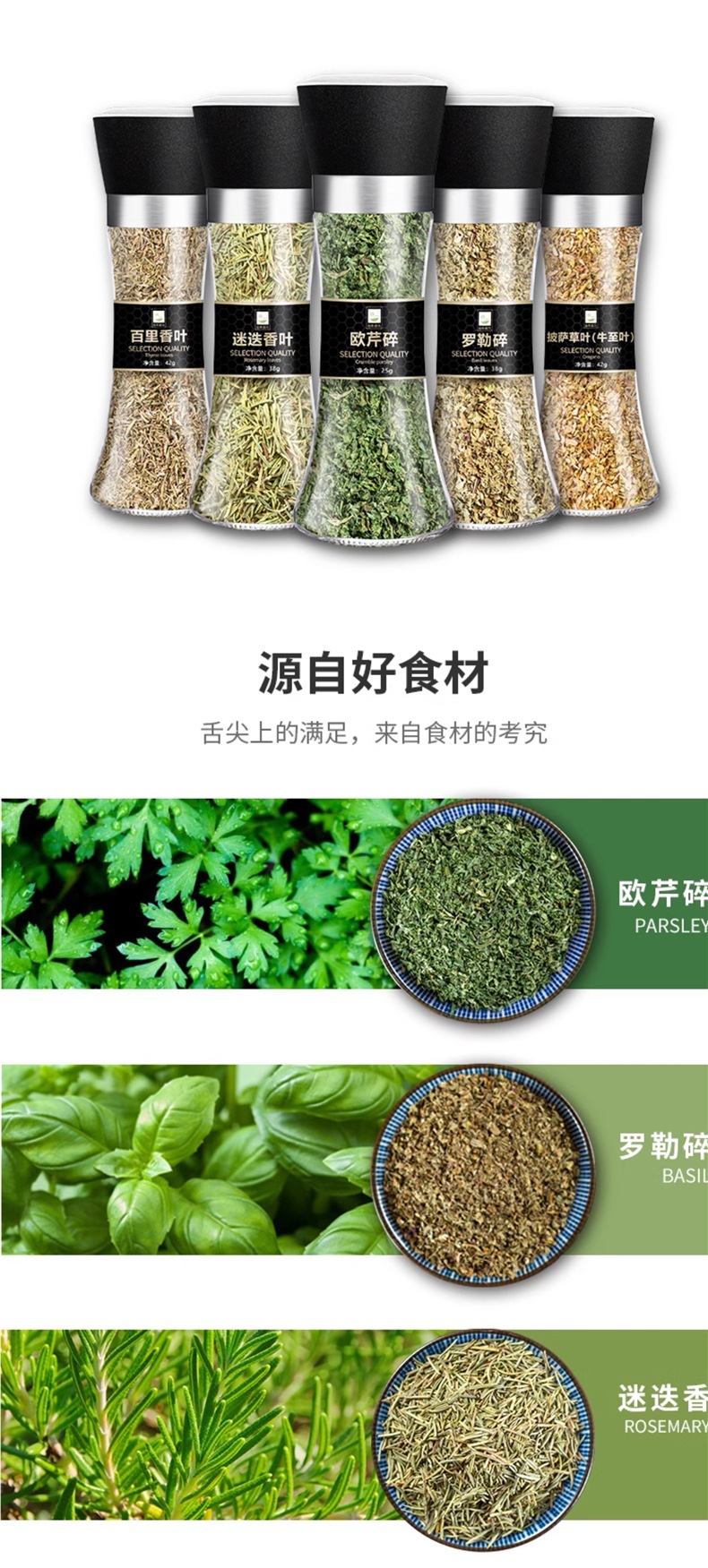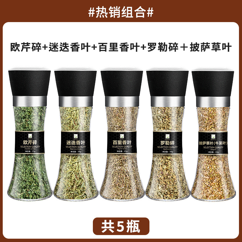 • [5병 추천] 다진 파슬리 + 로즈마리 잎 + 타임 잎 + 다진 바질 + 피자 잔디 잎.
