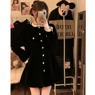 프렌치 한국 스타일의 달콤한 폴로 칼라 드레스 퍼프 슬리브 쉬폰 여성 여름 디자인 틈새 하이 웨이스트 기질 짧은 스커트