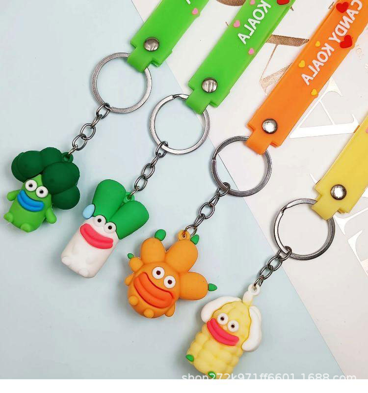 만화 재미있는 과일과 야채 키 체인 소시지 입 미운 귀여운 야채 펜던트 귀여운 부드러운 접착제 백팩 교수형 액세서리 도매스토어 가기