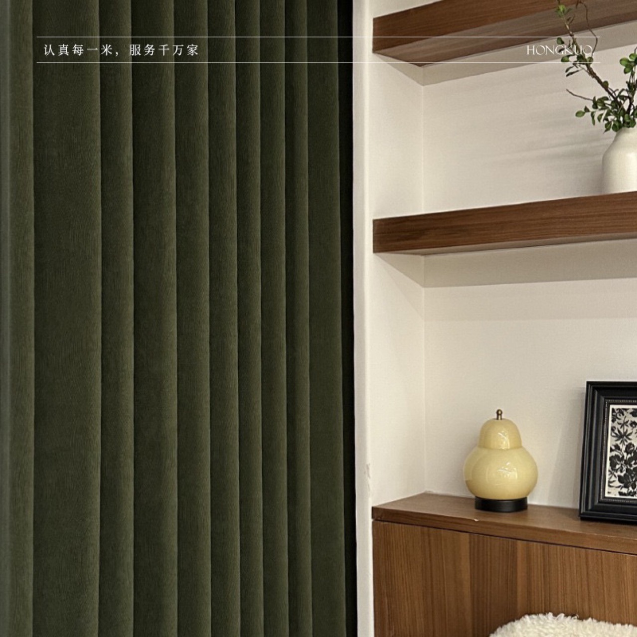 저녁 가을 시리즈 자카드 완전 차광 셔닐 커튼 침실 고급 복고풍 녹색 메일라드 크림스토어 가기