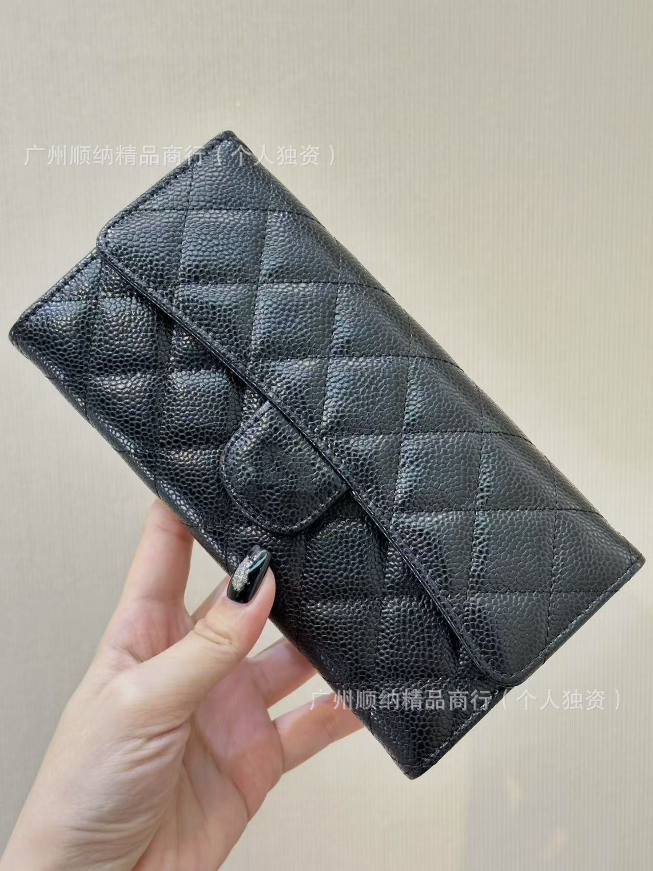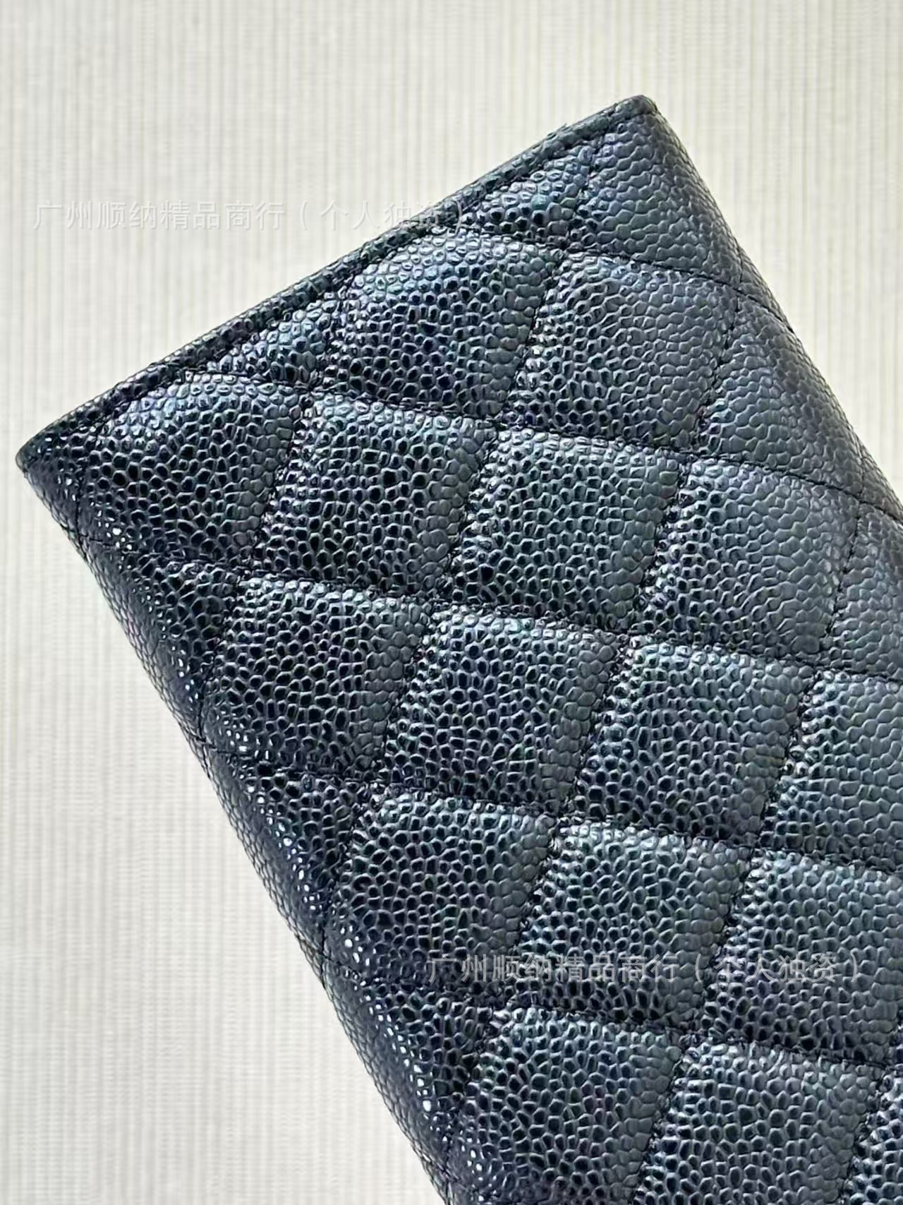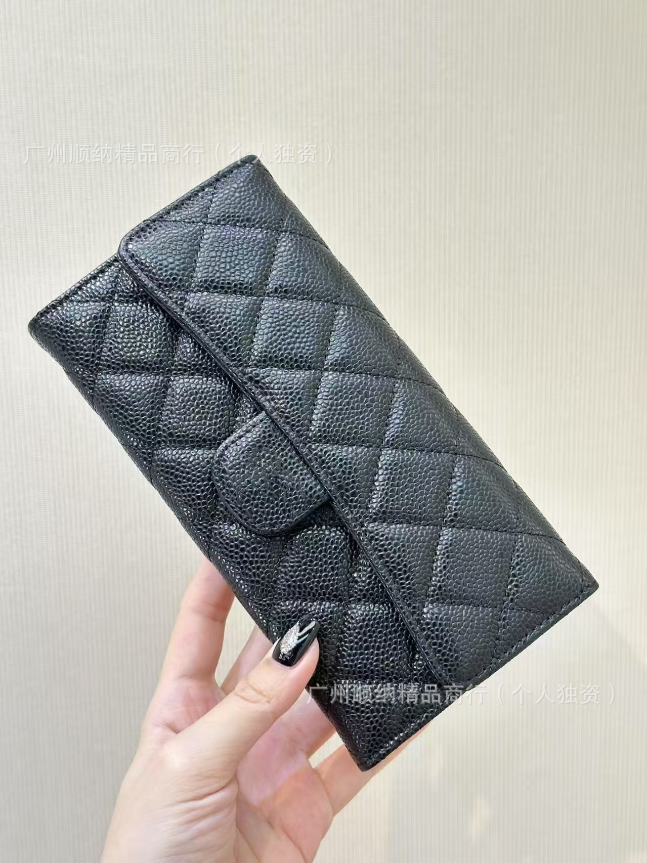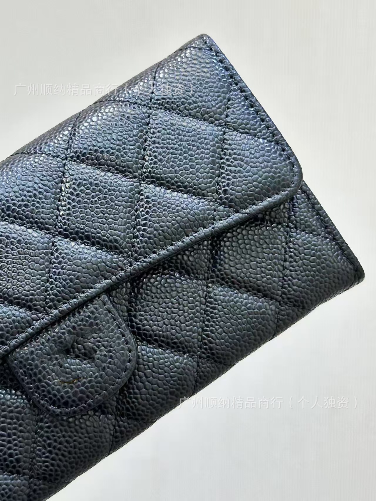 새로운 정품 가죽 작은 향기 지갑 양피 지갑 여성용 소 가죽 캐비어 작은 향기 cf 마름모 지갑 롱 스타일스토어 가기