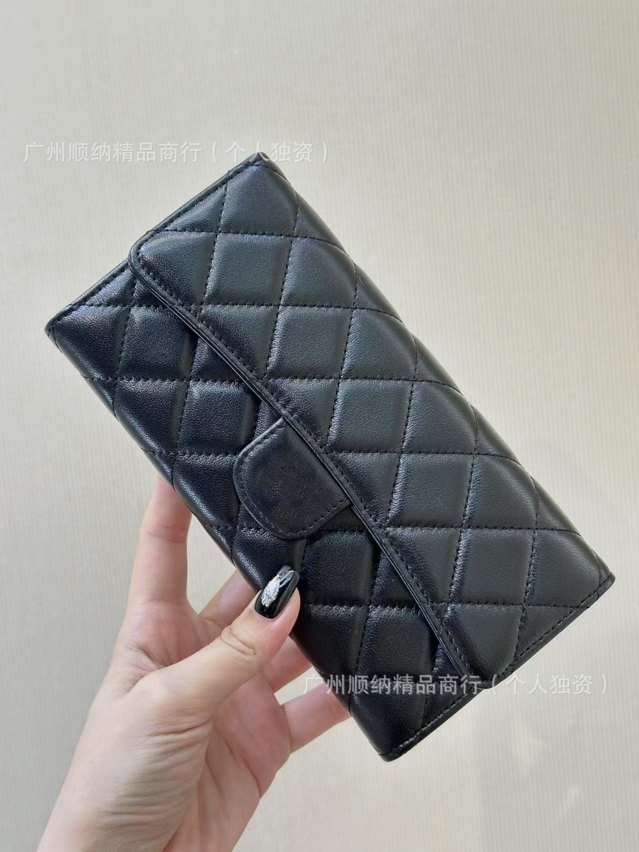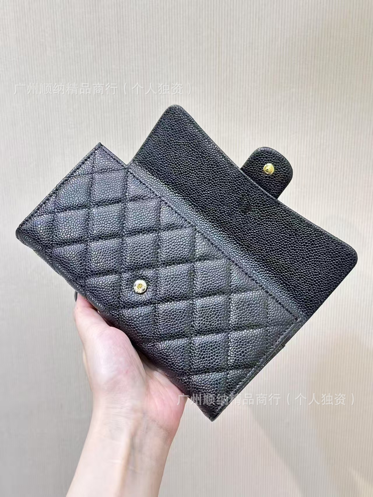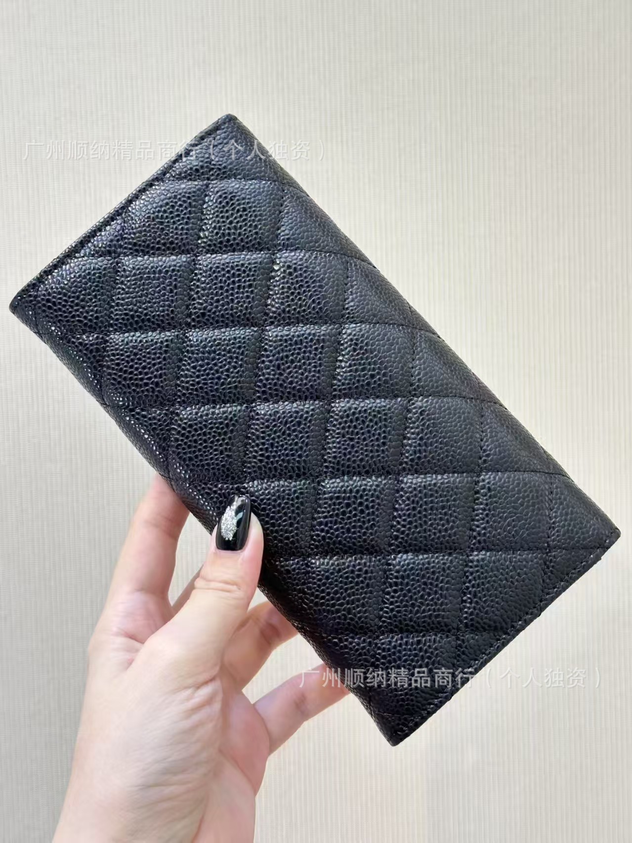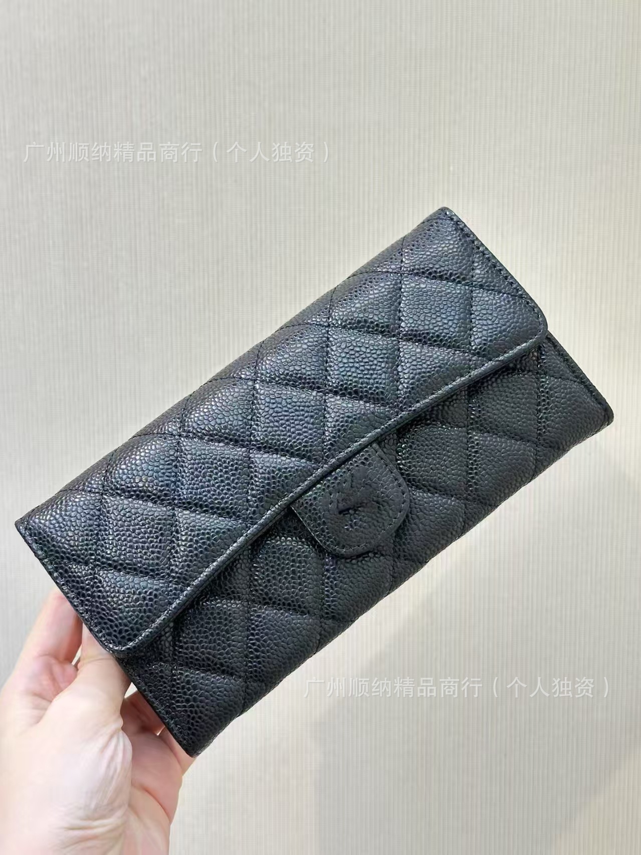 새로운 정품 가죽 작은 향기 지갑 양피 지갑 여성용 소 가죽 캐비어 작은 향기 cf 마름모 지갑 롱 스타일스토어 가기