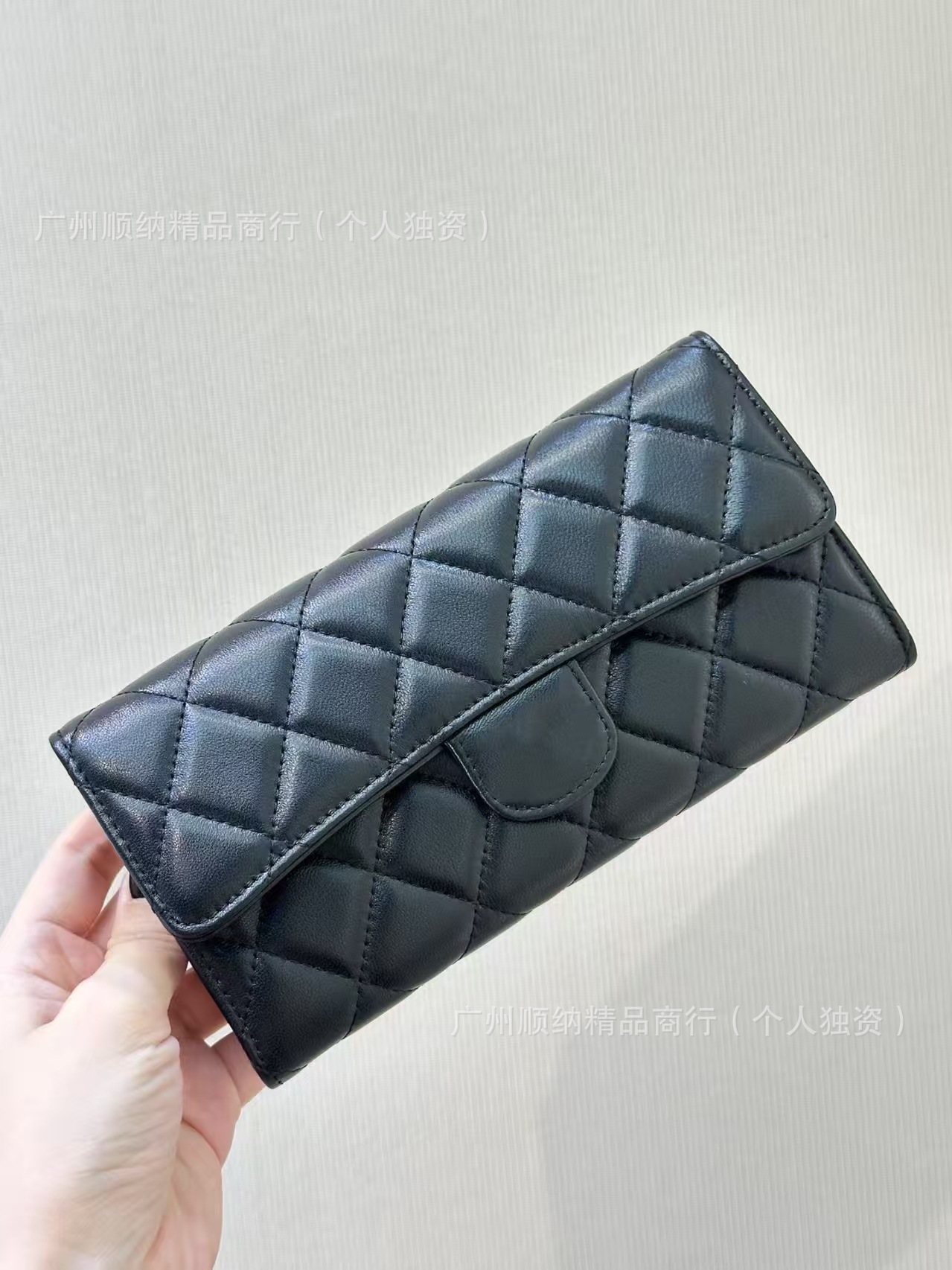 새로운 정품 가죽 작은 향기 지갑 양피 지갑 여성용 소 가죽 캐비어 작은 향기 cf 마름모 지갑 롱 스타일