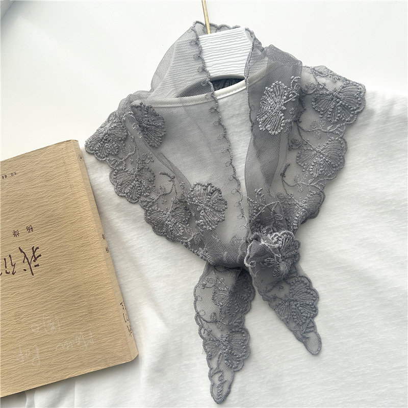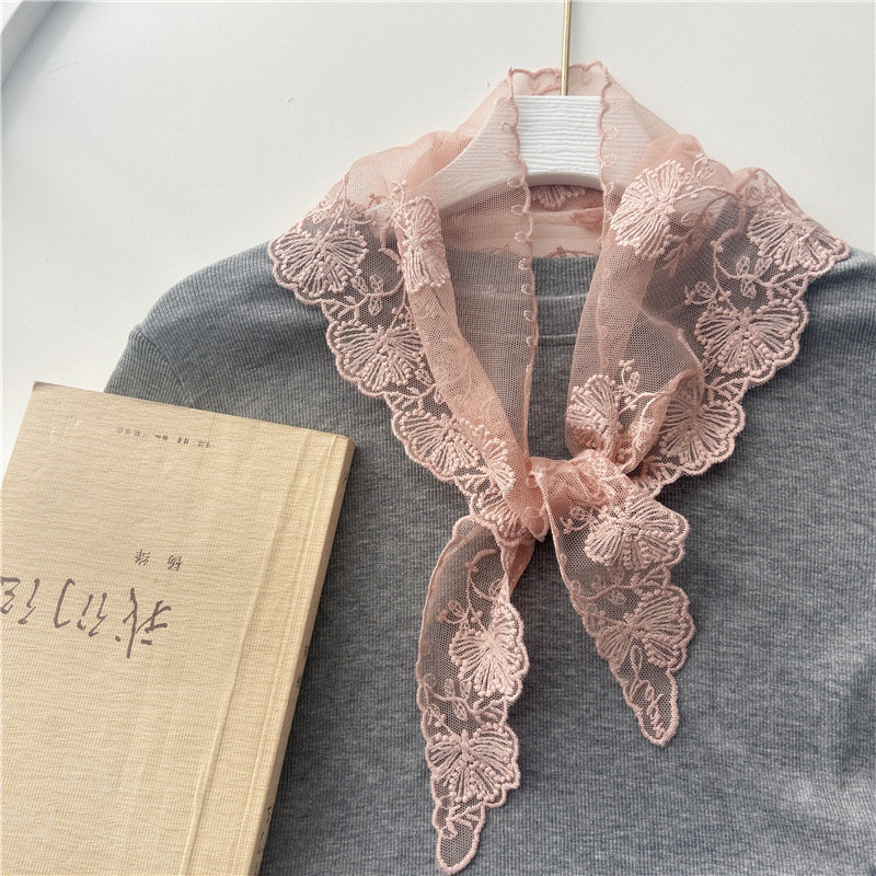여성을위한 한국 스타일 복고풍 프랑스 레이스 삼각형 스카프 여름 얇은 다목적 장식 외부 목도리 작은 실크 스카프