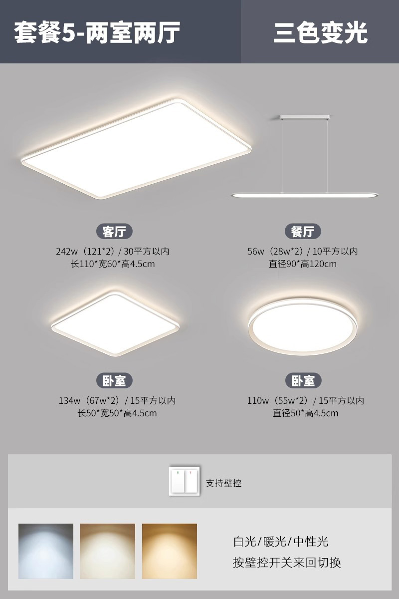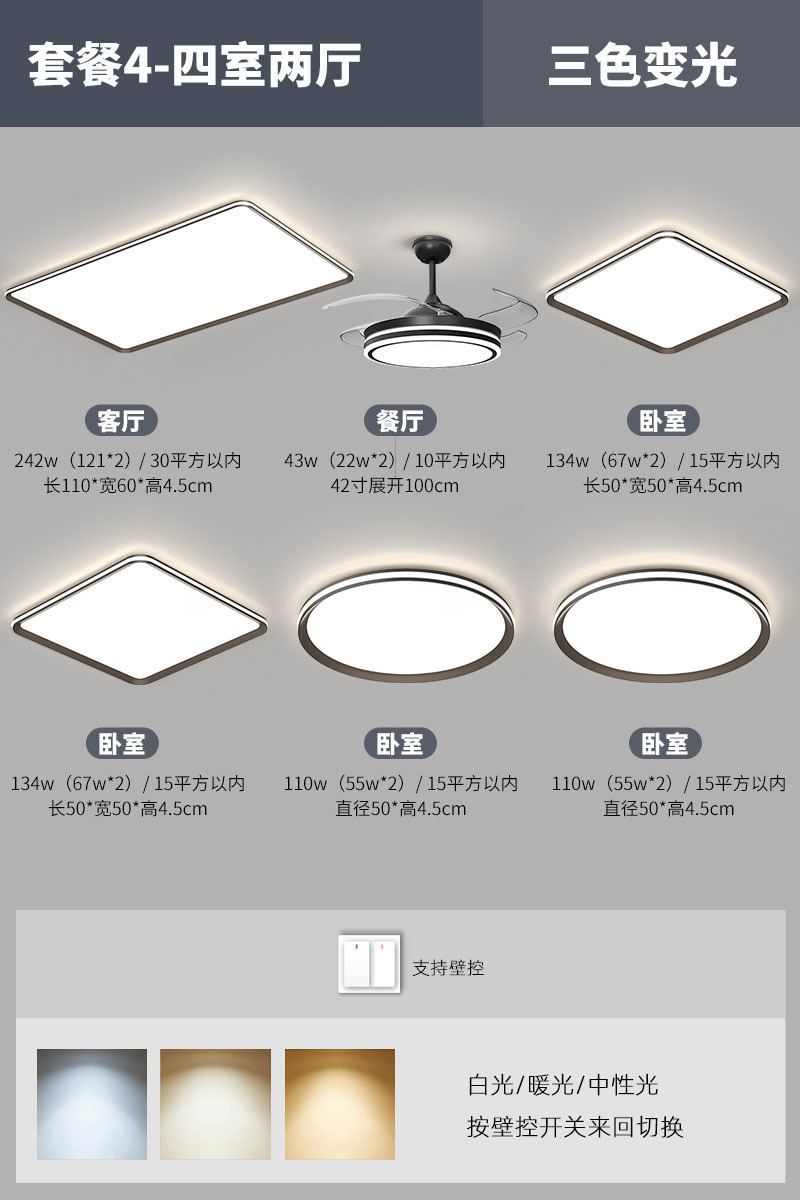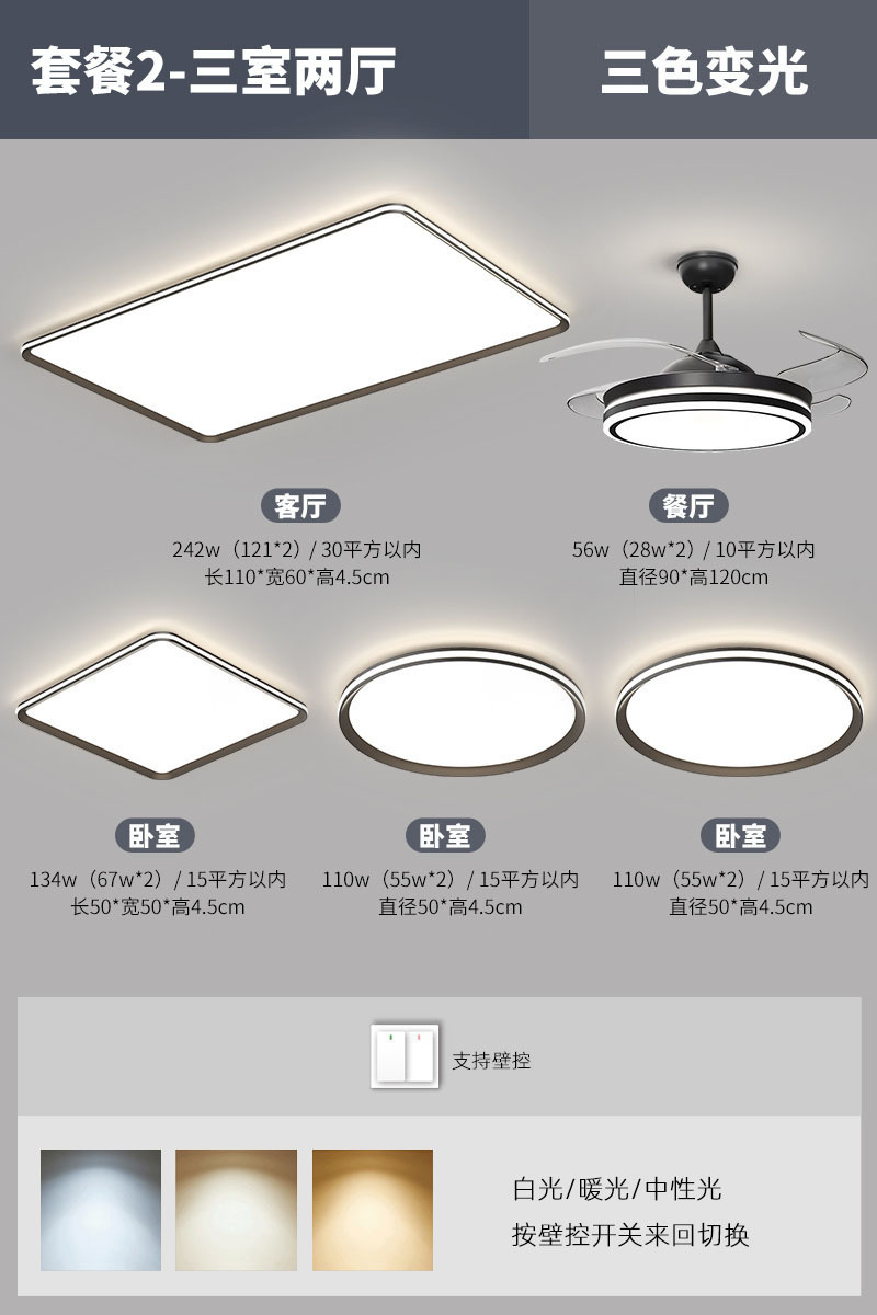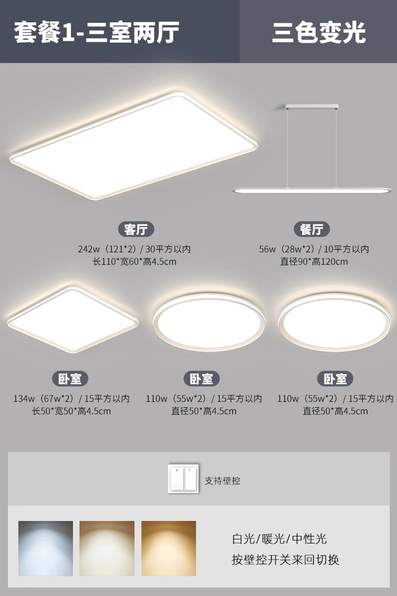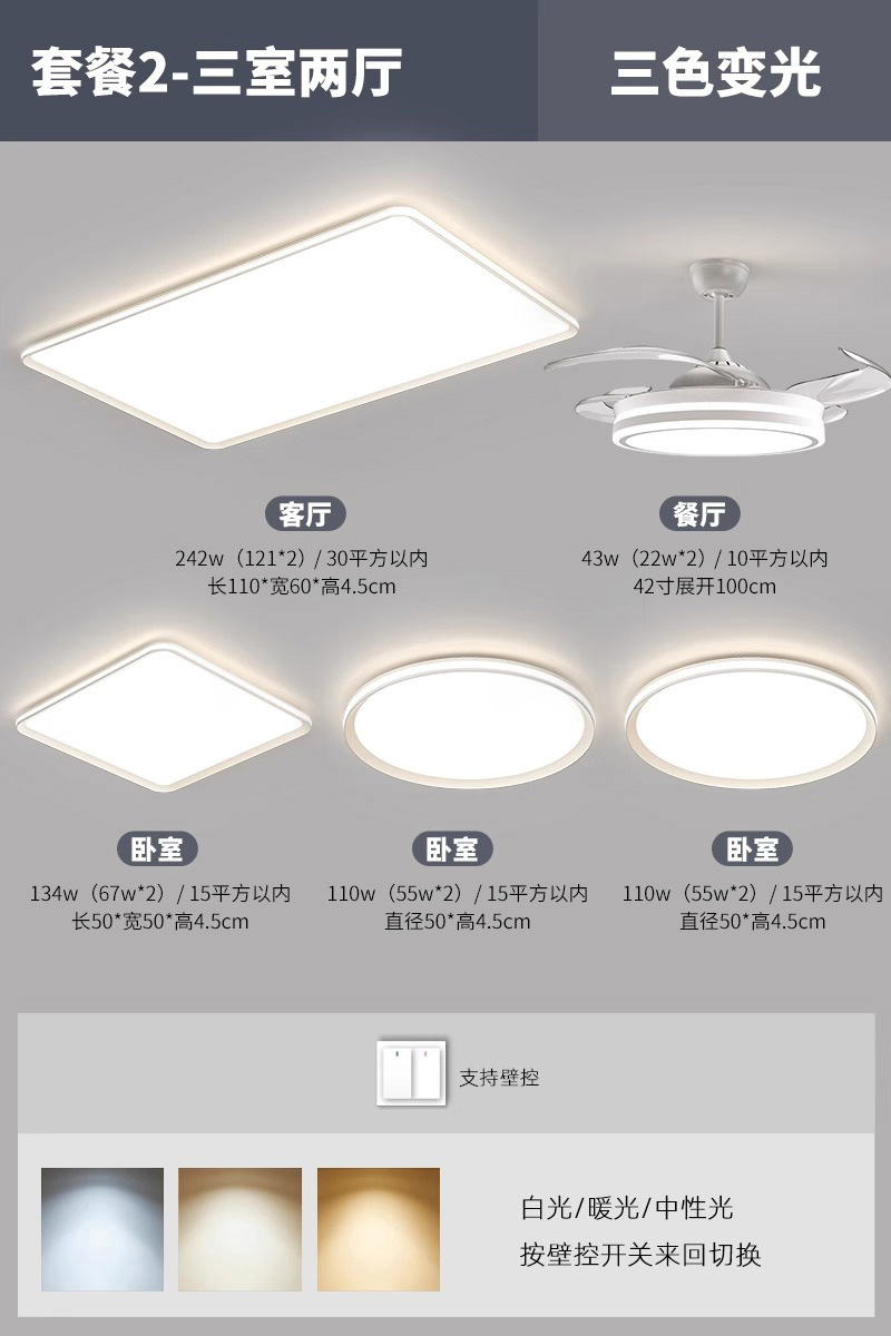 • 흰색 램프 본체 [일체형 완전 밀폐형 이음매 없는 버전] - 패키지 1 침실 3개와 거실 2개(식당 샹들리에)
