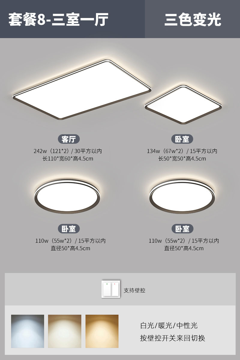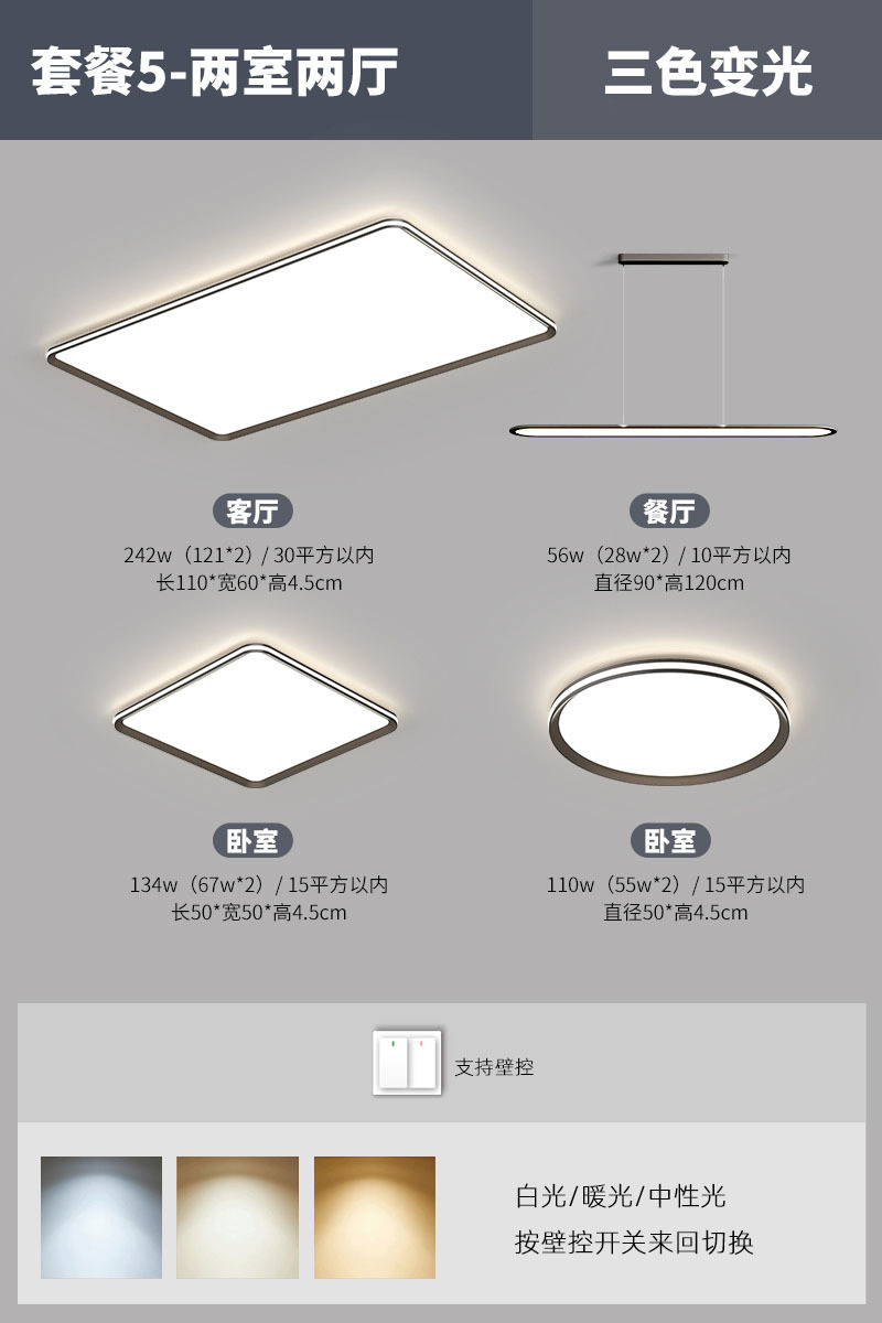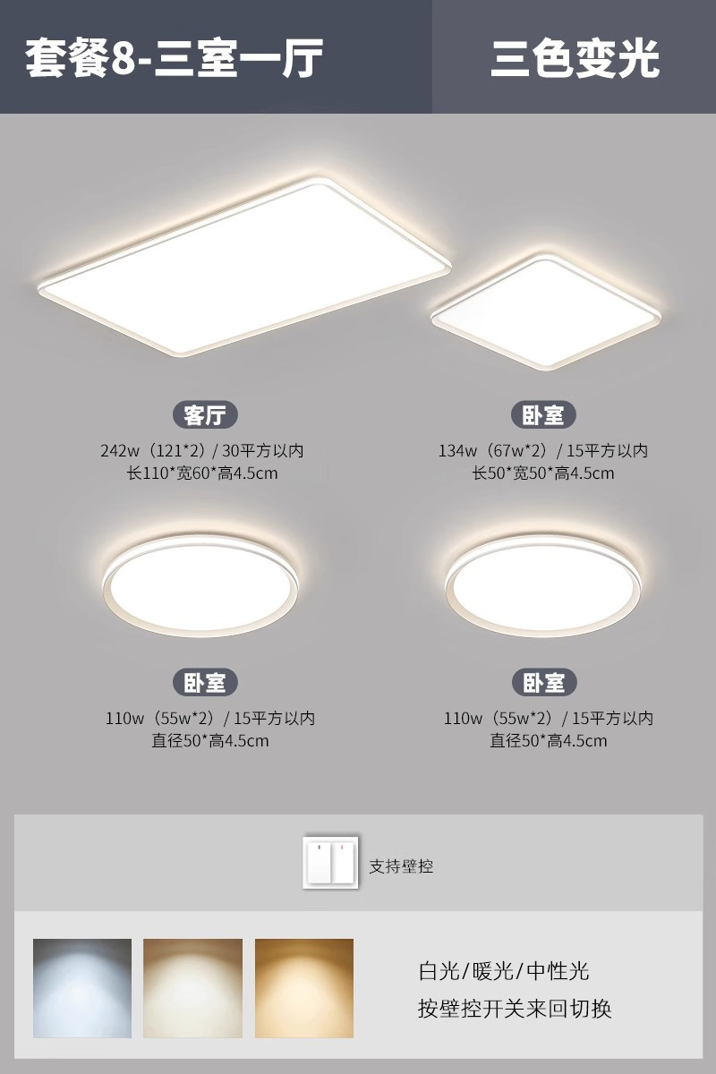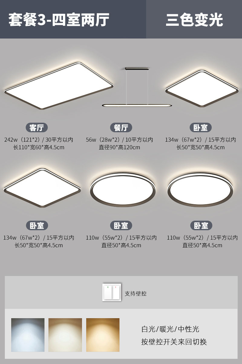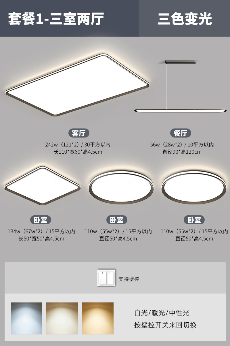 • 흰색 램프 본체 [일체형 완전 밀폐형 이음매 없는 버전] - 패키지 1 침실 3개와 거실 2개(식당 샹들리에)