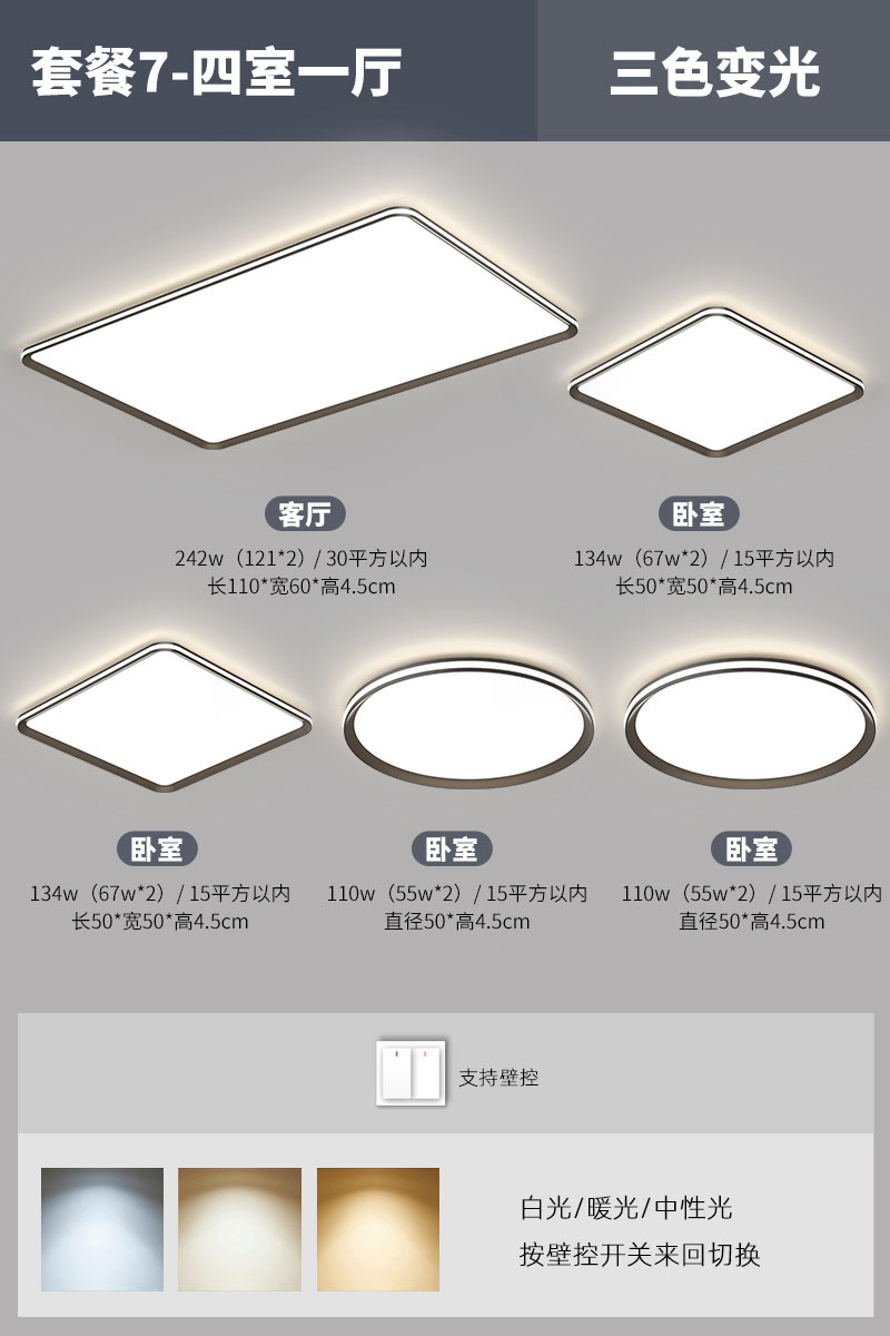 • 블랙 램프 본체 [통합 완전 밀폐형 심리스 버전] - 패키지 7, 침실 4개 및 거실 1개