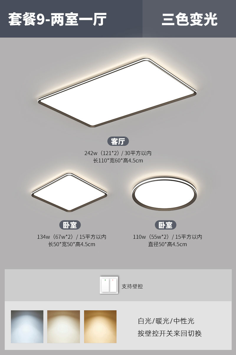 • 블랙 램프 본체 [일체형 완전 밀폐형 심리스 버전] - 패키지 3, 침실 4개, 거실 2개(식당 샹들리에)