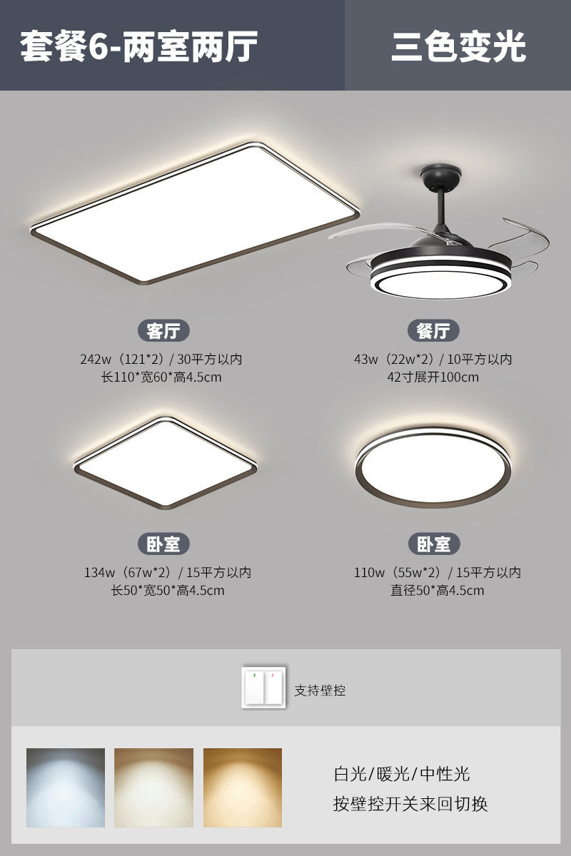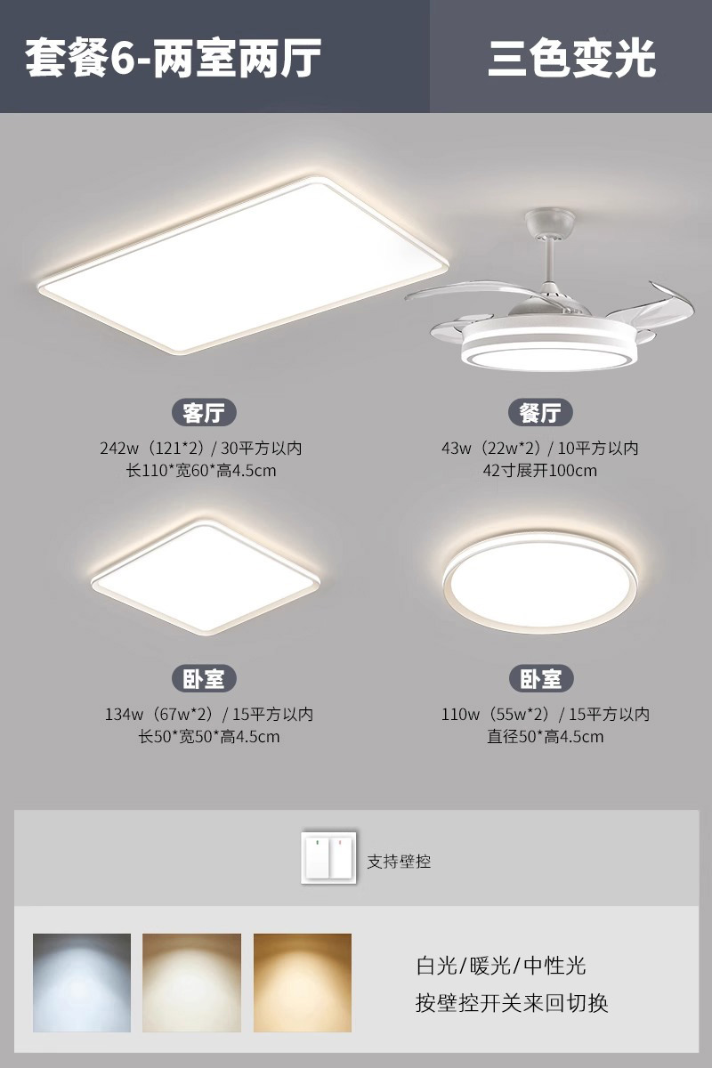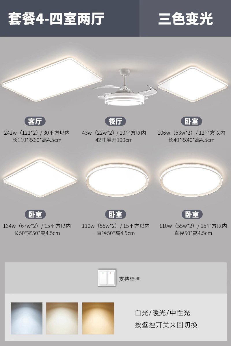 • 흰색 램프 본체 [일체형 완전 밀폐형 이음매 없는 버전] - 패키지 2 침실 3개와 거실 2개(레스토랑 팬 램프)
