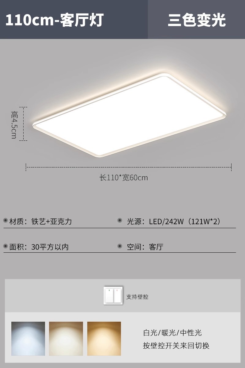 • 흰색 램프 본체 [통합 완전 밀폐형 이음매 없는 버전] 직사각형 110*60cm