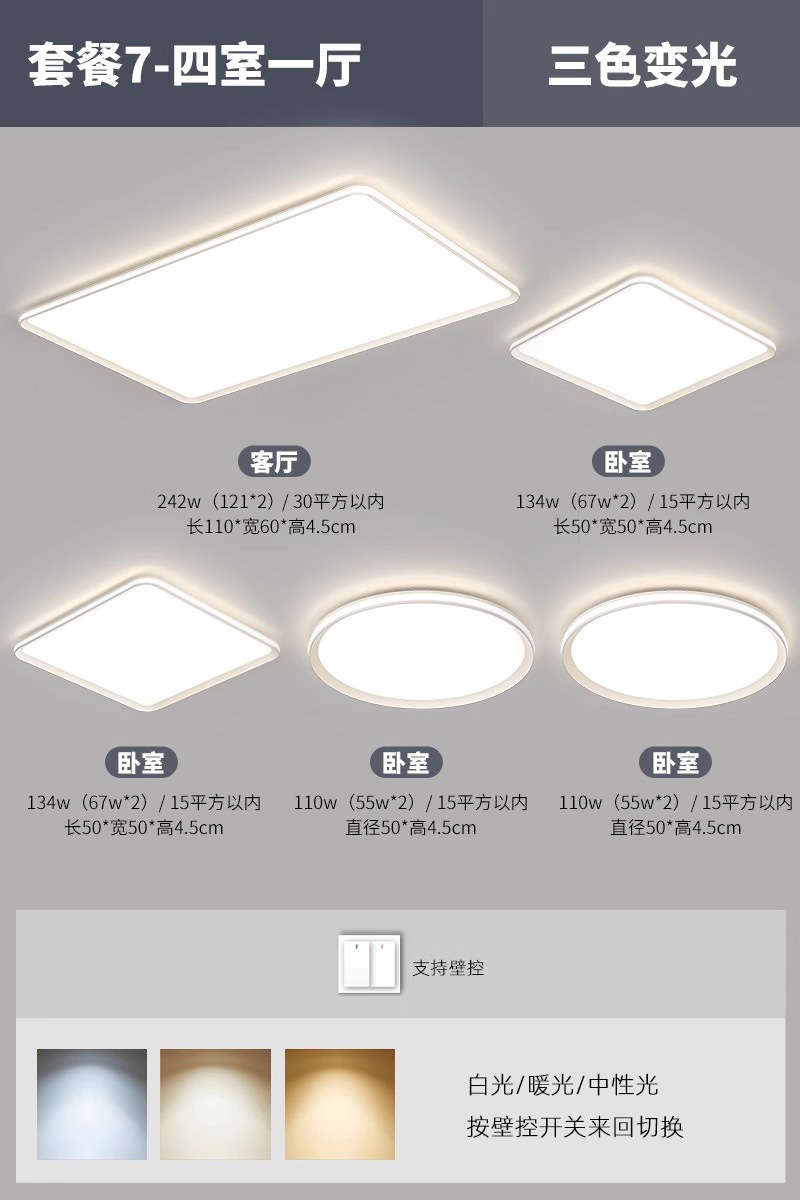 • 흰색 램프 본체 [통합 완전 밀폐형 이음매 없는 버전] - 패키지 7, 침실 4개 및 거실 1개