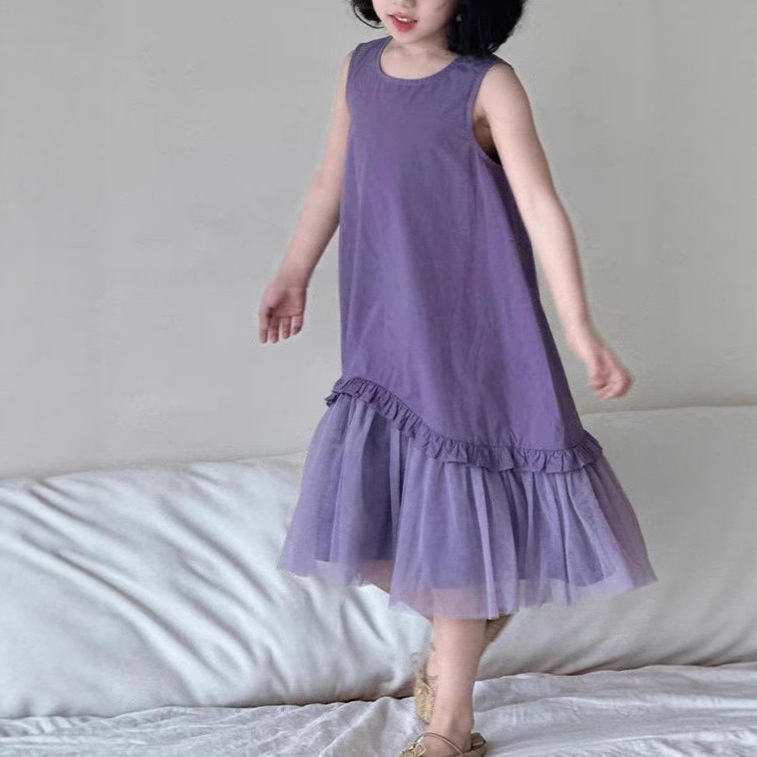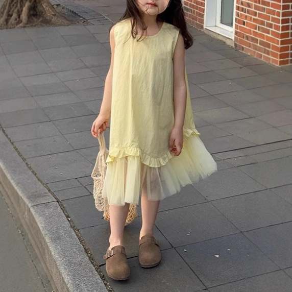 소녀 원피스 여름 2025 새로운 어린이 스타일 메쉬 면화 원피스 소녀 여름 민소매 공주 원피스스토어 가기