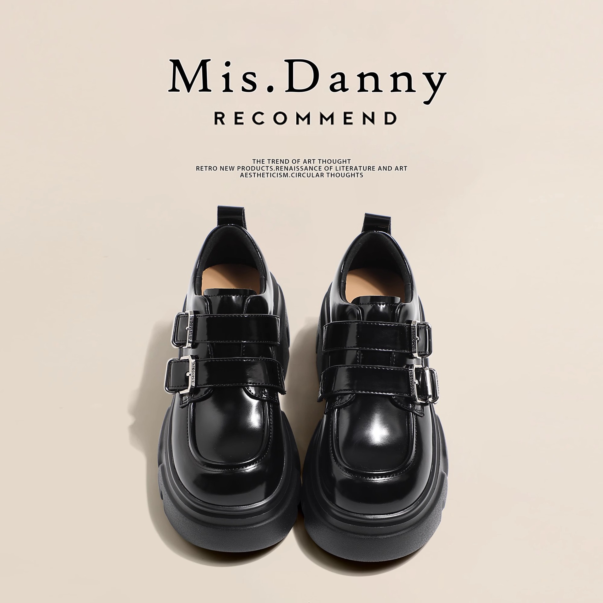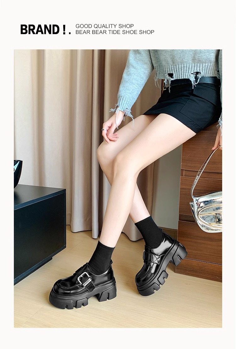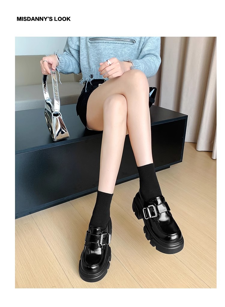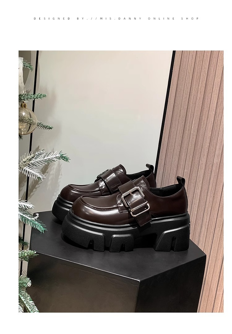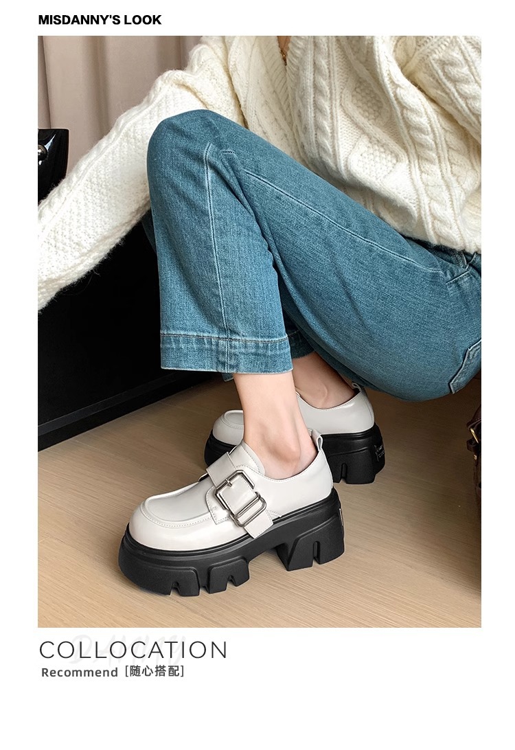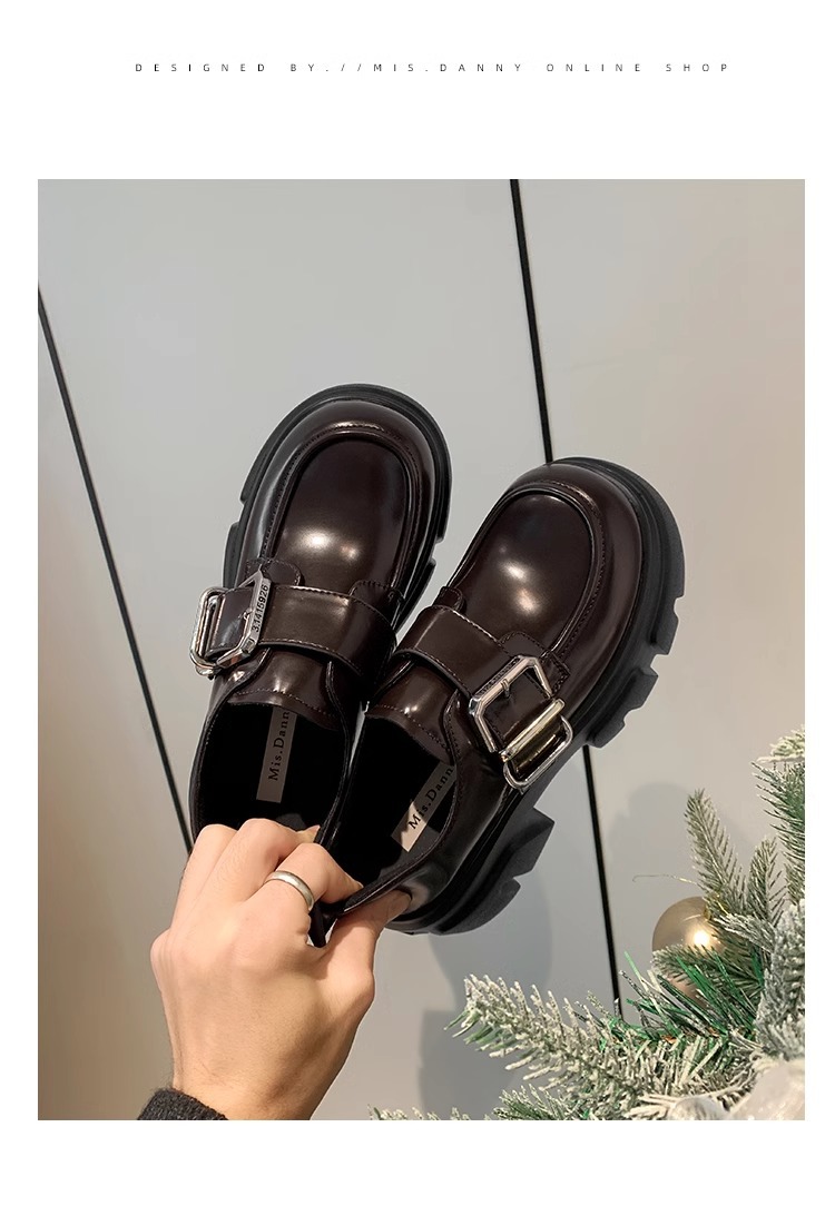 두꺼운 밑창 여성용 로퍼 2024 봄 신작 작은 가죽 신발 영국식 금속 버클 슬립온 여성용 신발스토어 가기