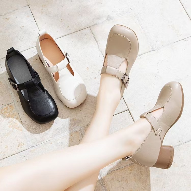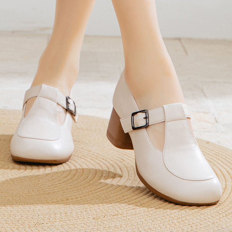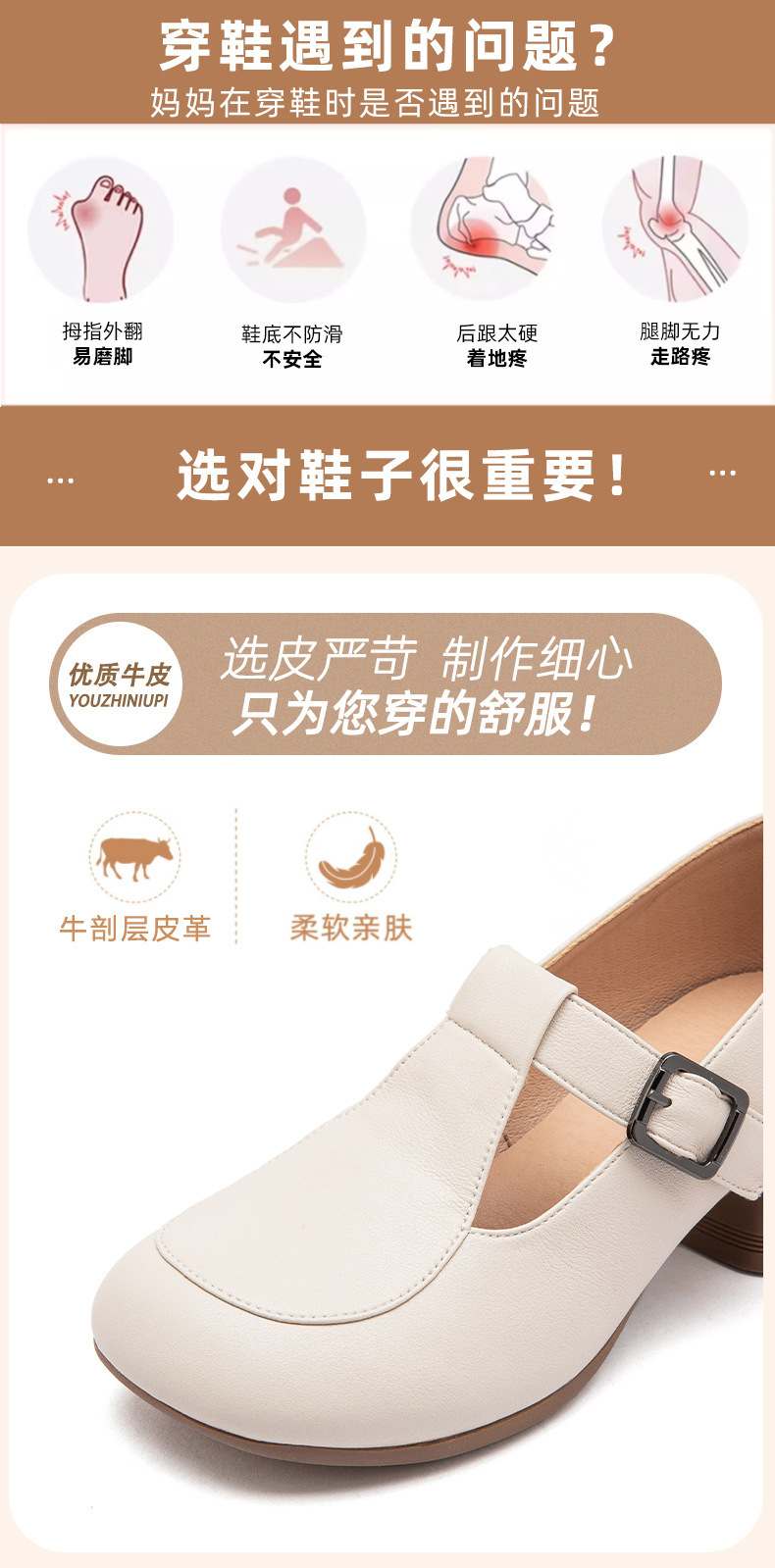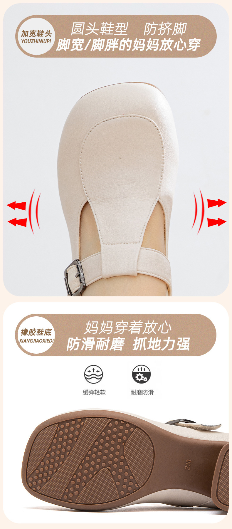 부드러운 가죽 엄마용 봄 여름 캐주얼 신발 편안한 둥근 앞코 내구성 있는 부드러운 밑창 미끄럼 방지 두꺼운 굽 가죽 신발 여성용 다용도 패션