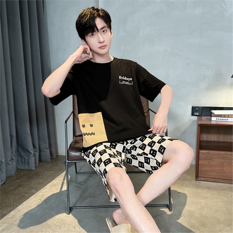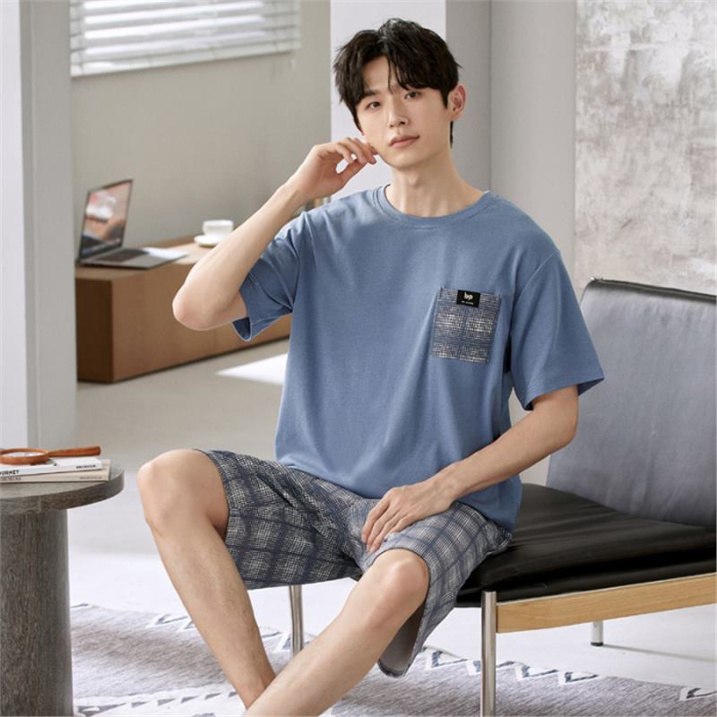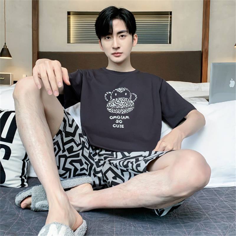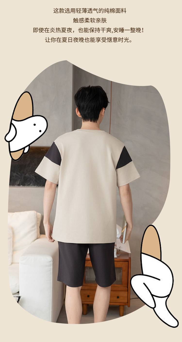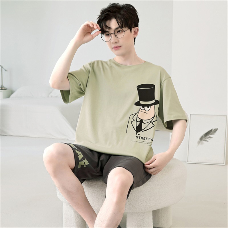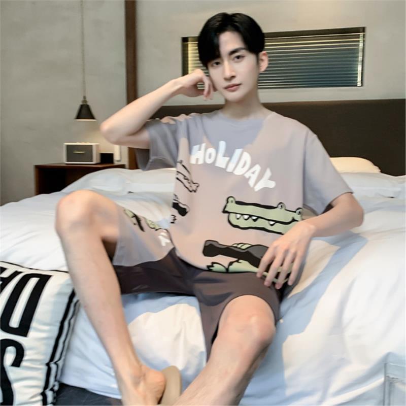 남성용 순면 잠옷, 새로운 여름 반팔 소년 및 청소년 가정복, 큰 어린이 및 소년을 위한 여름 얇은 양복스토어 가기