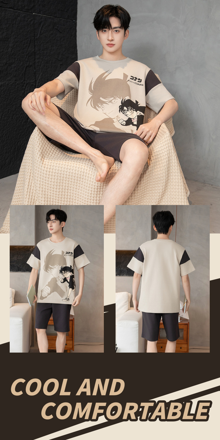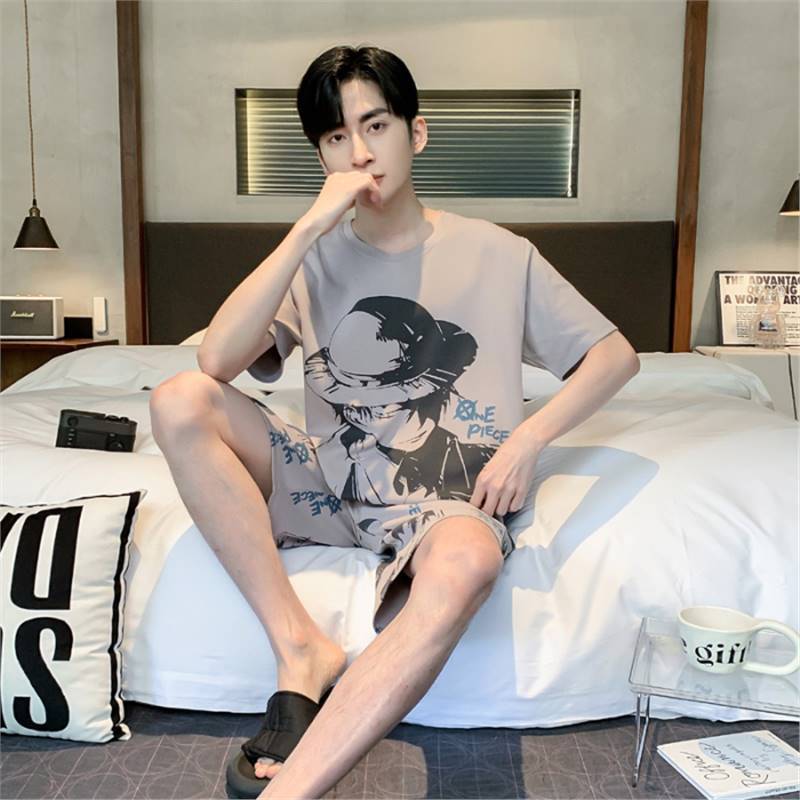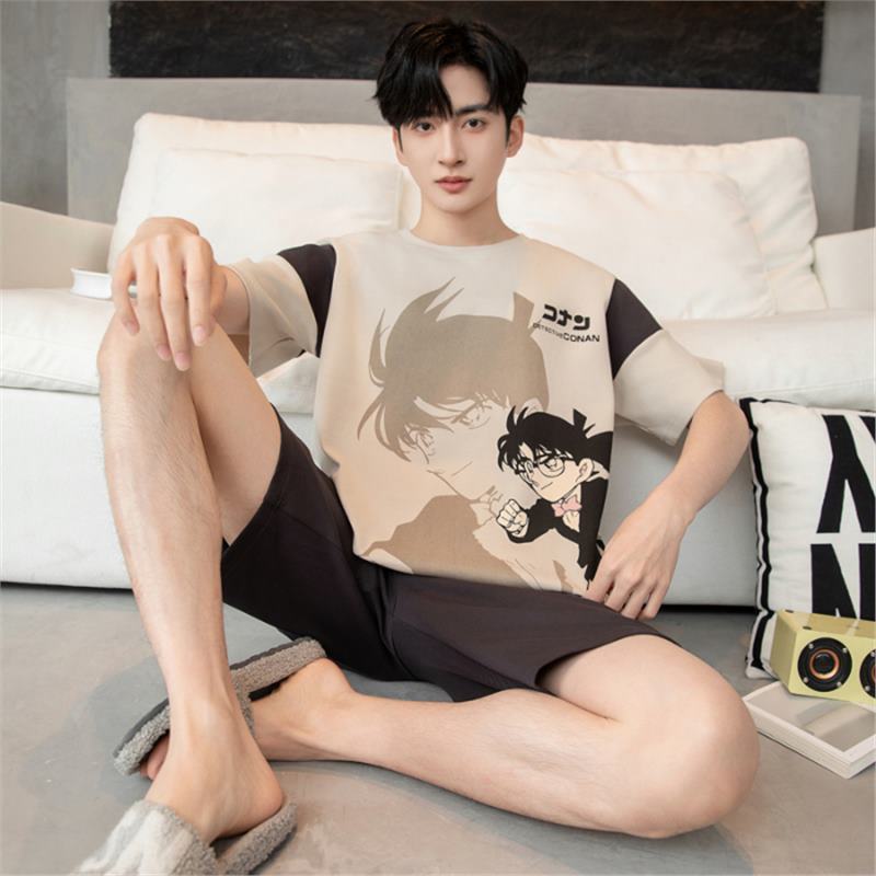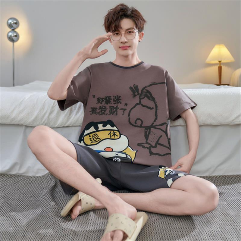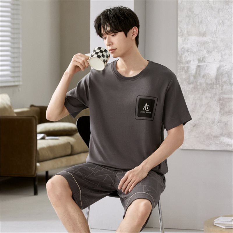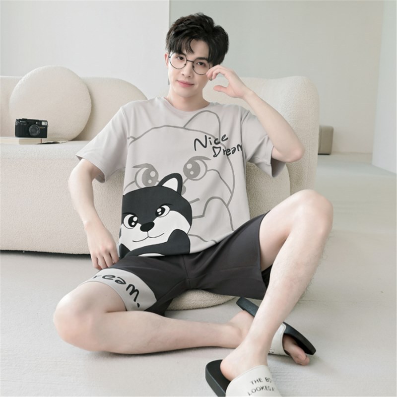 남성용 순면 잠옷, 새로운 여름 반팔 소년 및 청소년 가정복, 큰 어린이 및 소년을 위한 여름 얇은 양복스토어 가기