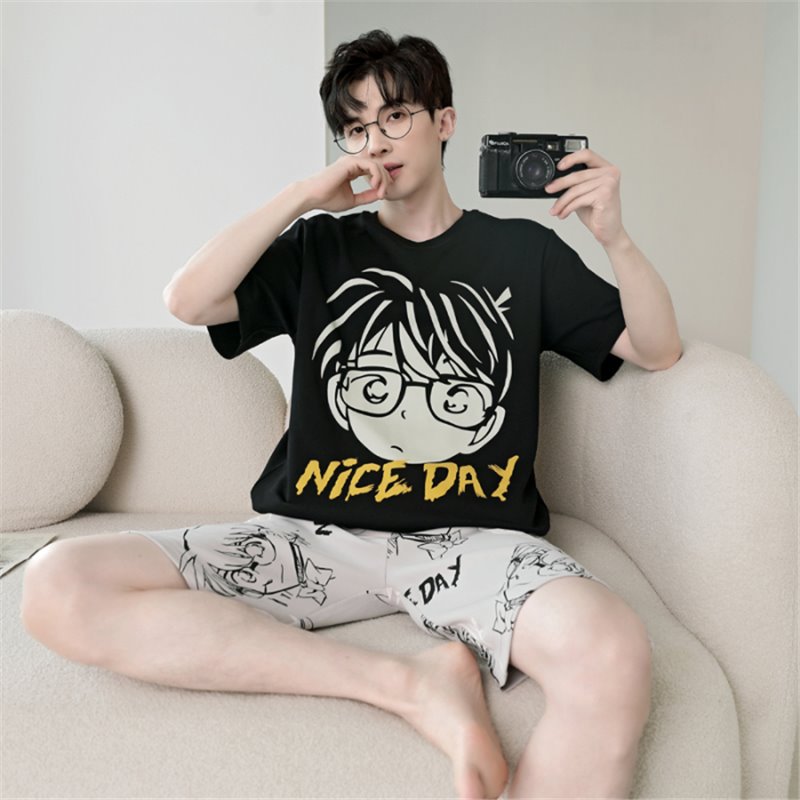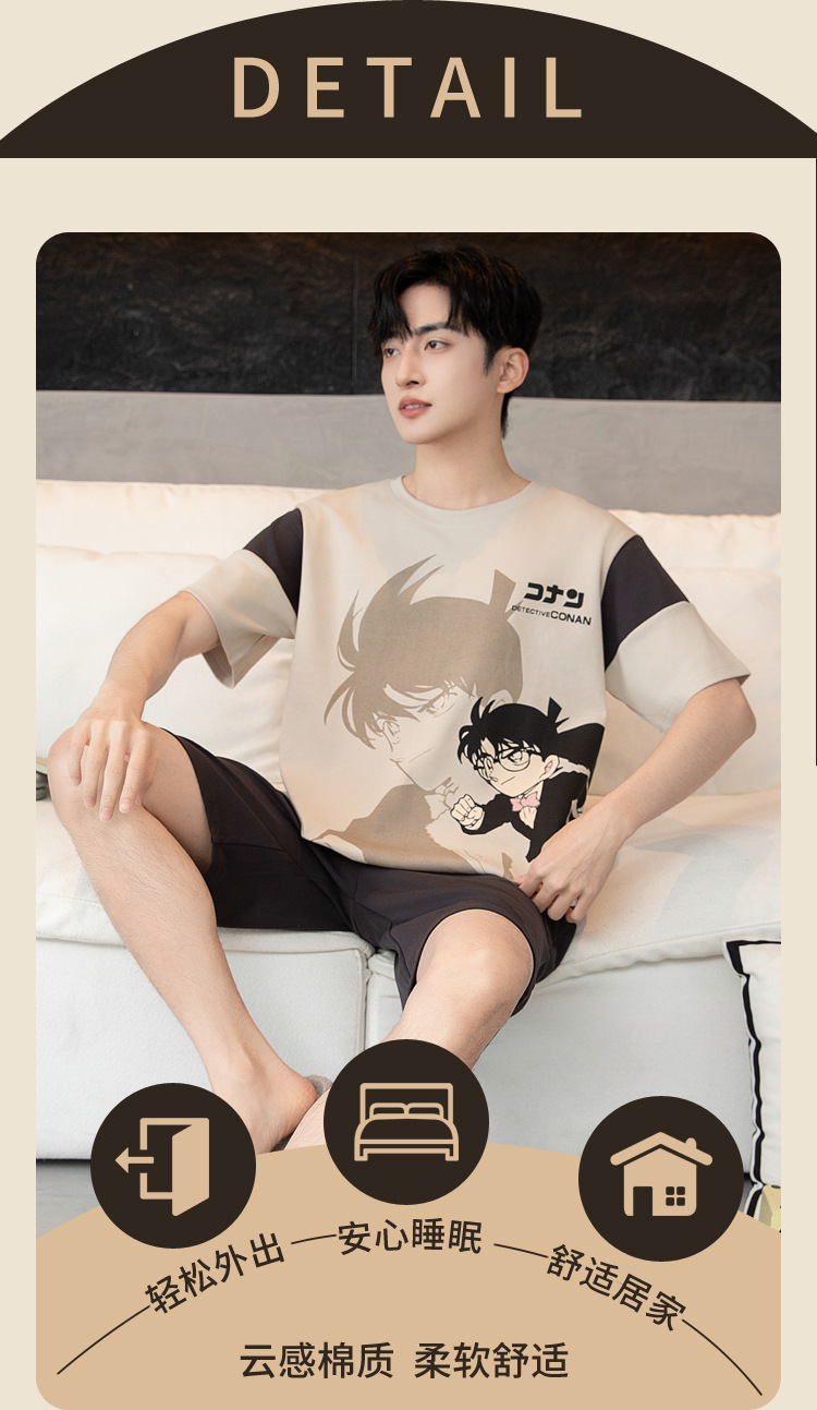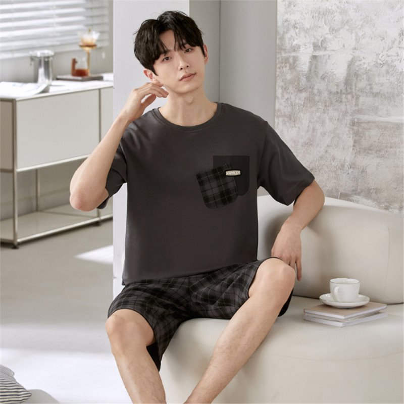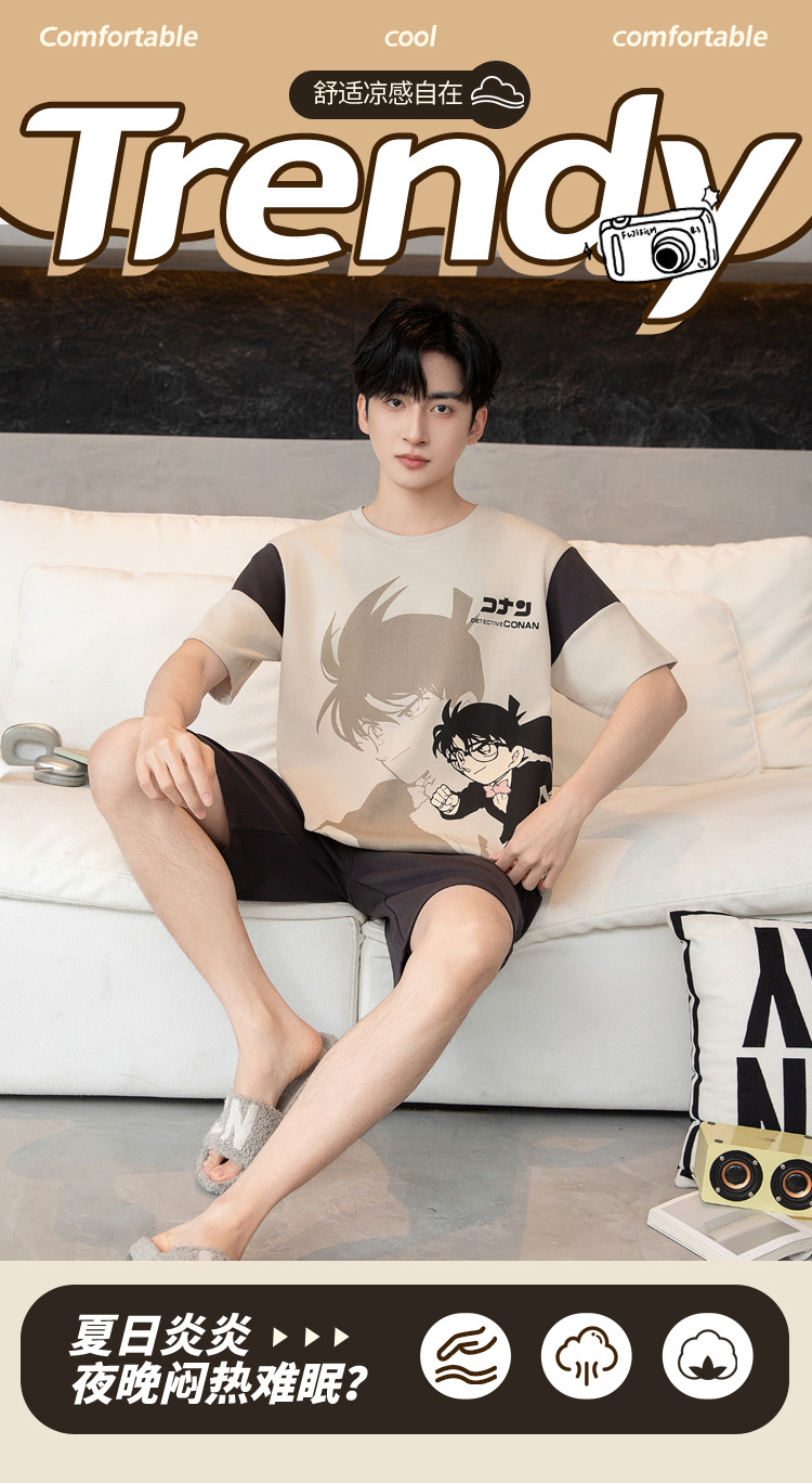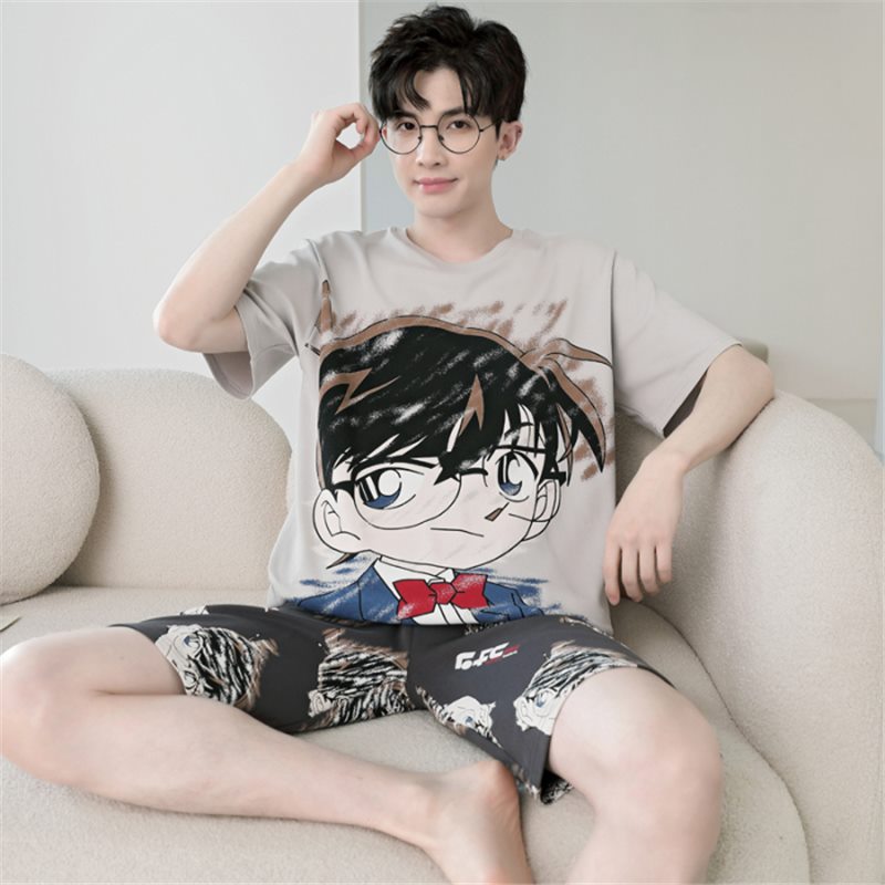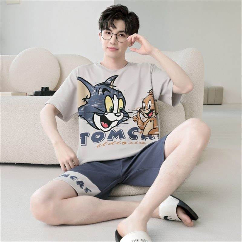 남성용 순면 잠옷, 새로운 여름 반팔 소년 및 청소년 가정복, 큰 어린이 및 소년을 위한 여름 얇은 양복스토어 가기