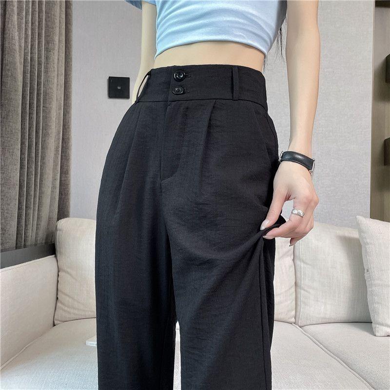아이스 실크 코튼 리넨 마이크로 플레어 팬츠 여성용 여름 얇은 2025 새로운 여성용 캐주얼 바지 스트레이트 튜브 딥 와이드 레그 팬츠스토어 가기