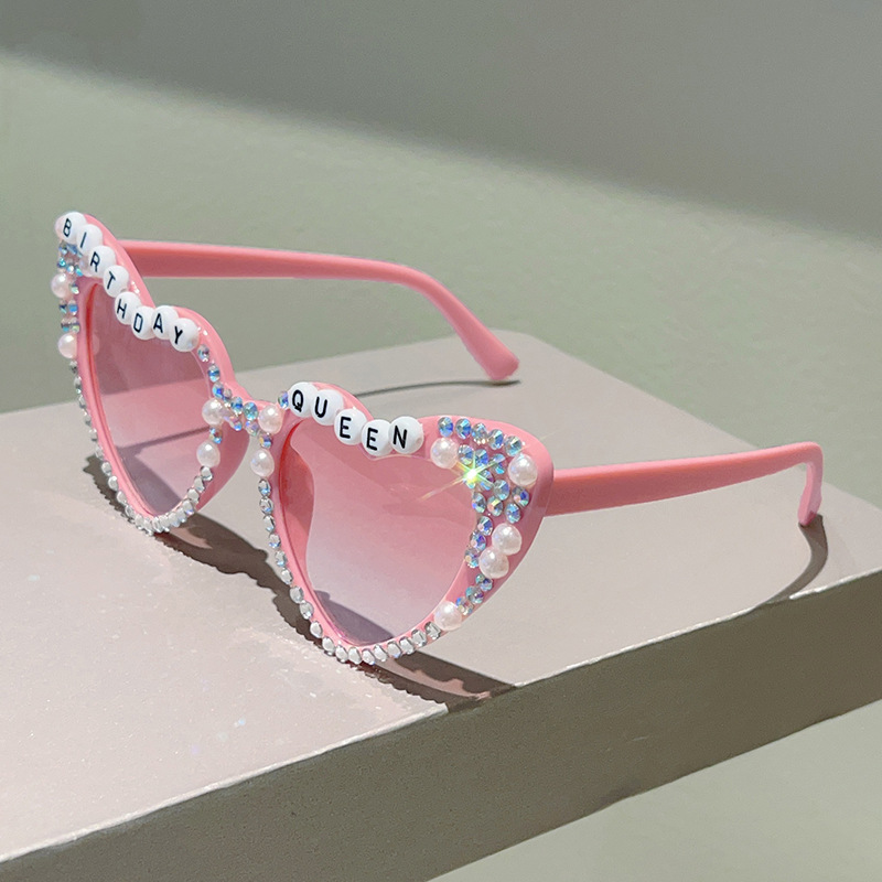 공장 도매 사랑의 마음 모양 생일 축하 진주 선글라스 생일 파티 장식 유럽풍 선글라스