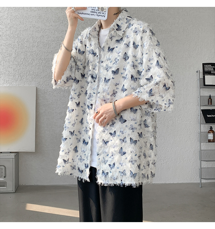 2025 여름 새로운 트렌디 브랜드 반팔 셔츠 남성 커플 술 꽃 셔츠 캐주얼 루즈 라펠 반팔 자켓