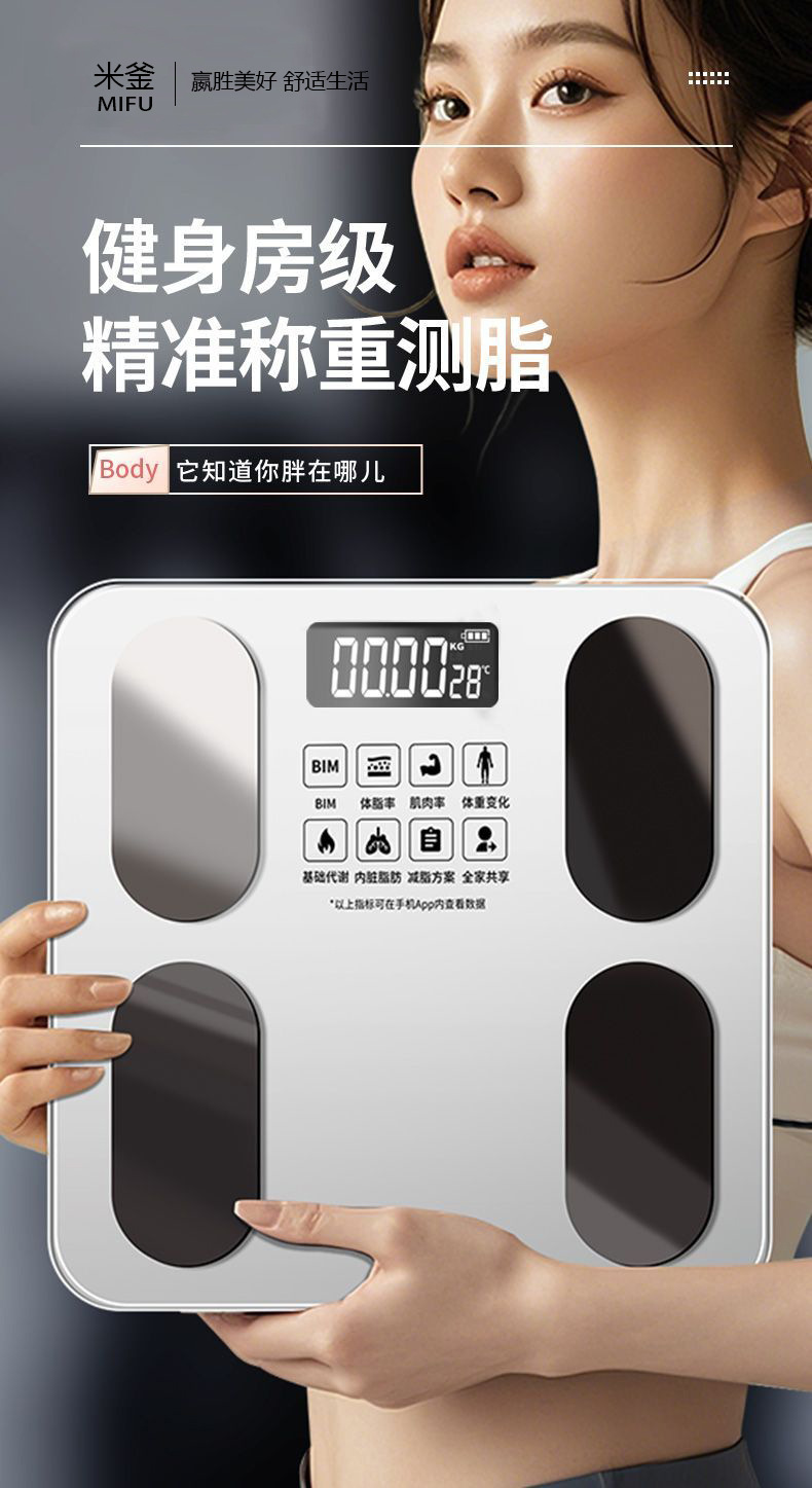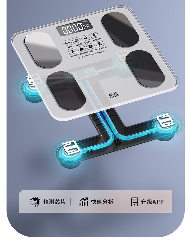 체지방 측정기, 스마트하고 정확한 가정용 지방 측정기, 성인용 블루투스 체중계, 소형 전자 체중계