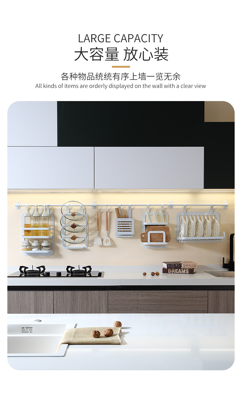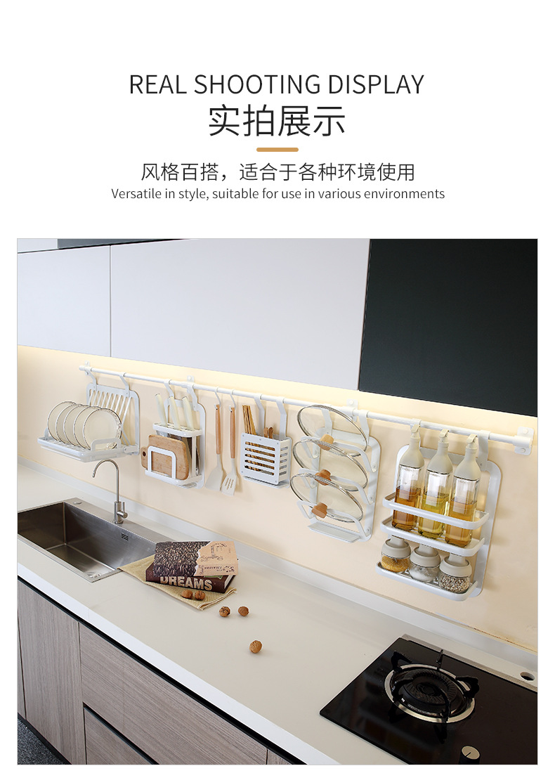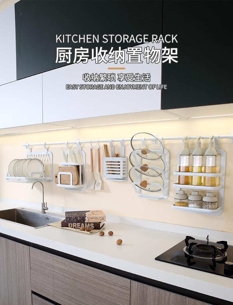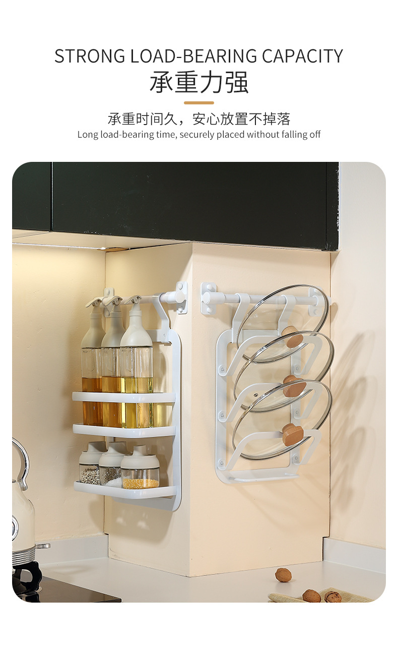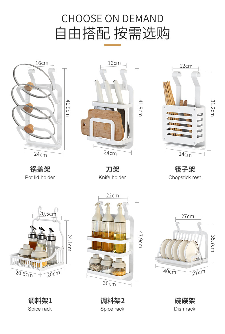 주방 벽걸이 수납 선반 무타공 스페이스 알루미늄 걸이형 선반 양념통 뚜껑걸이 접시 수납 선반 벽면 칼걸이