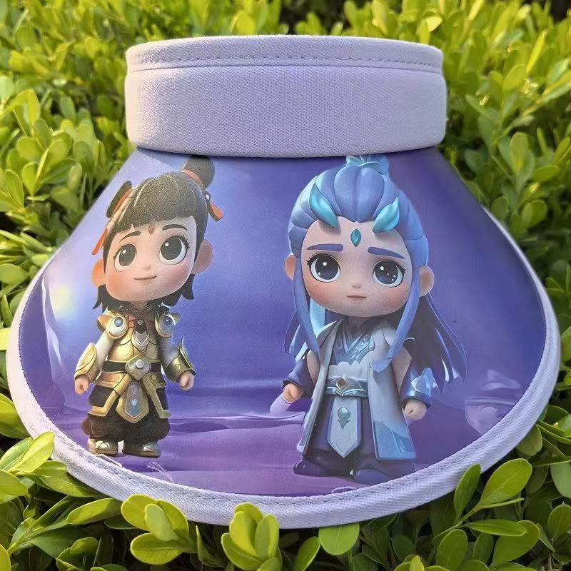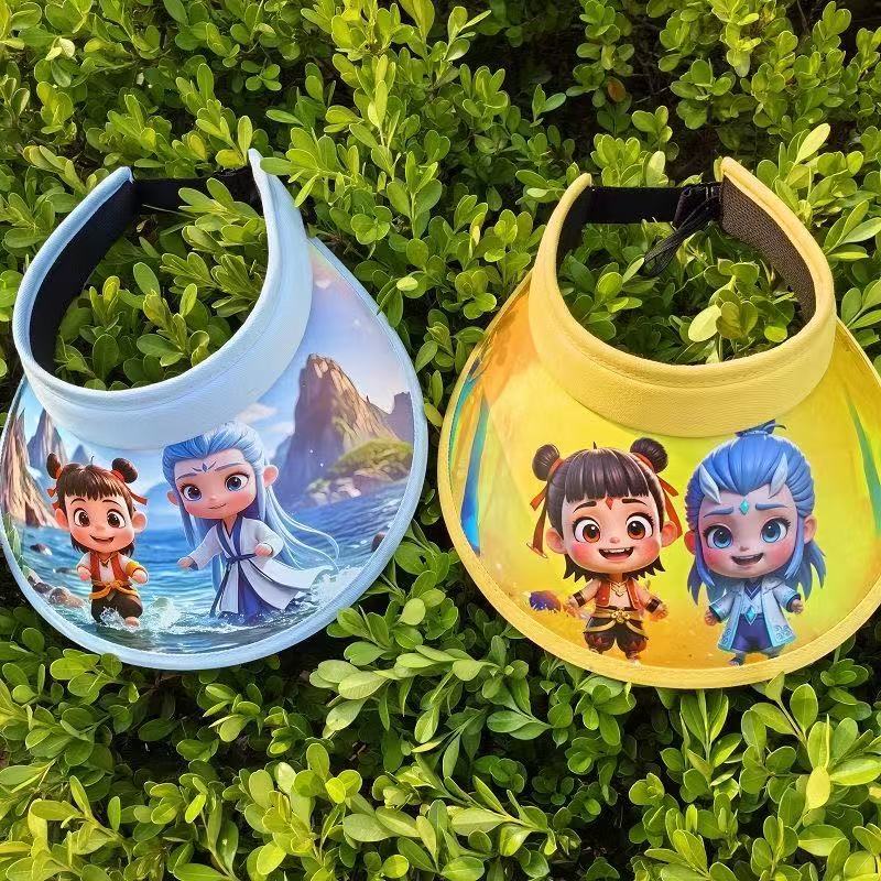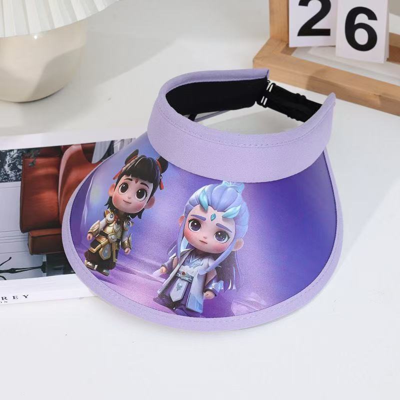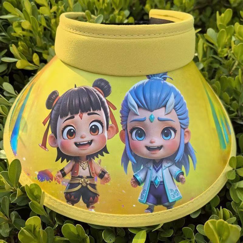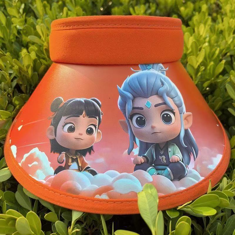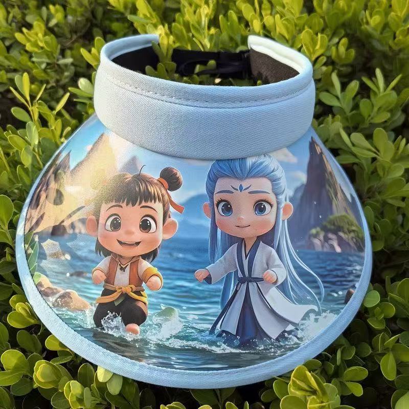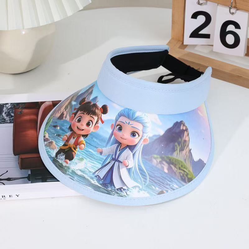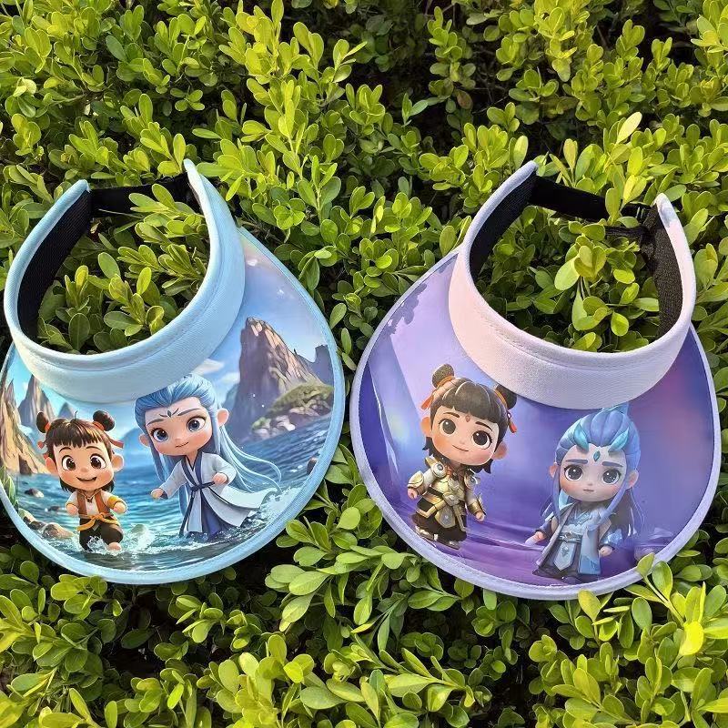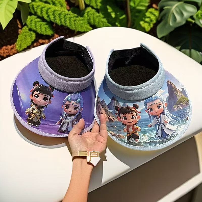 새로운 Nezha 어린이 빈 모자 여름 큰 챙 태양 보호 태양 모자 만화 귀여운 태양 모자 롤링 휴대용 모자