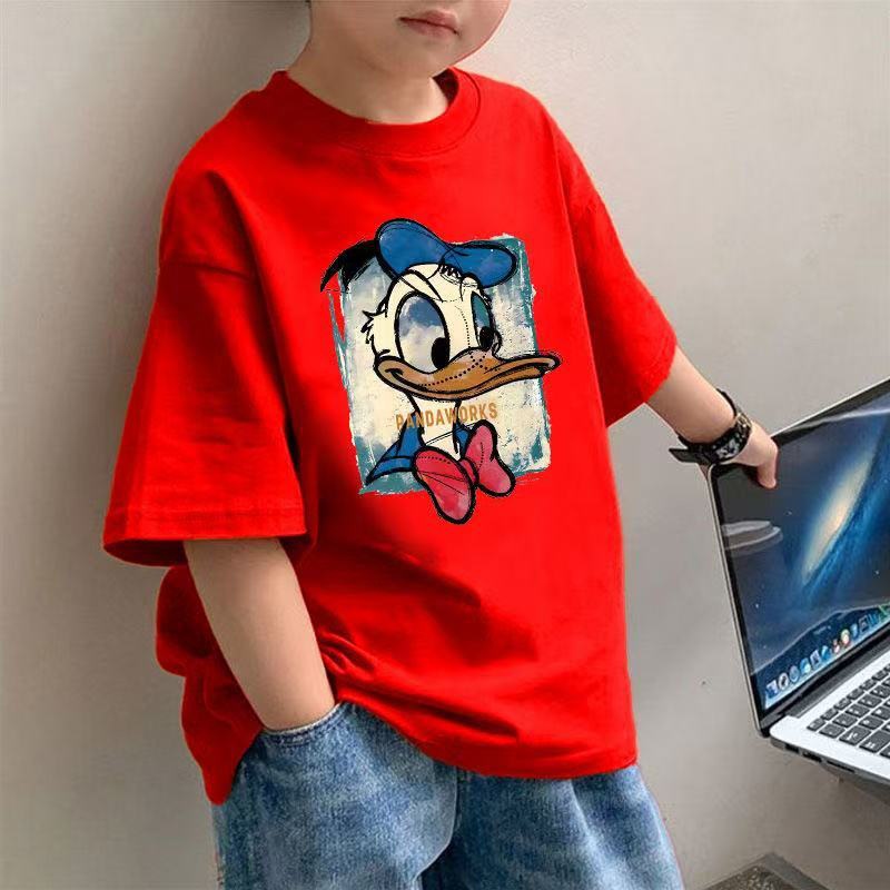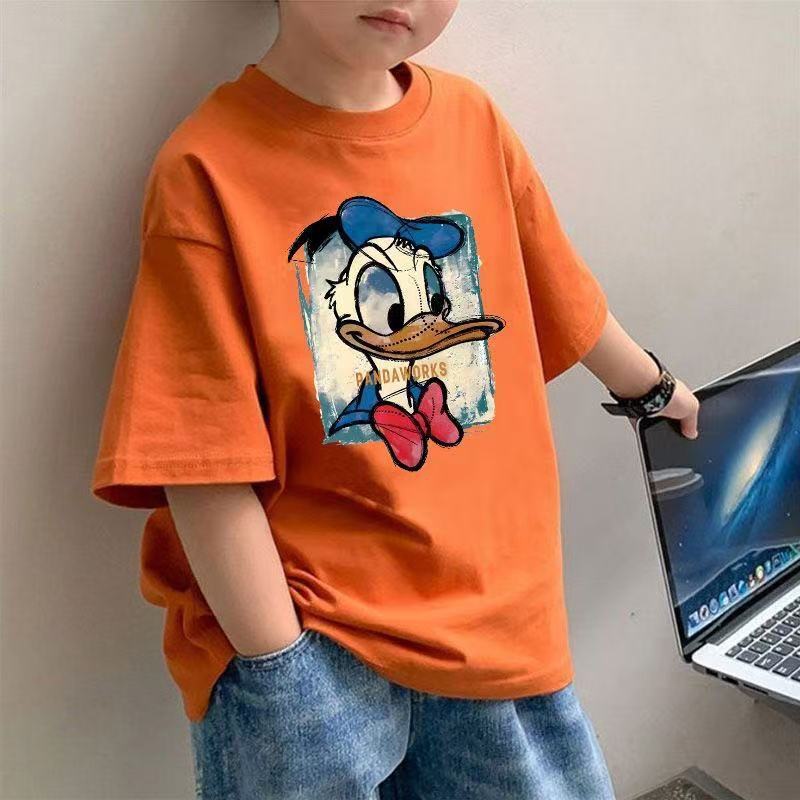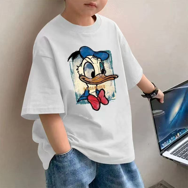 순수 코튼 반팔 만화 프린트 새로운 중국 스타일 여름 새로운 스타일 중대형 어린이 다용도 어린이 티셔츠 도널드 덕 티셔츠 어린이