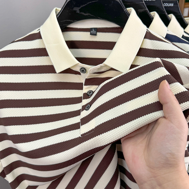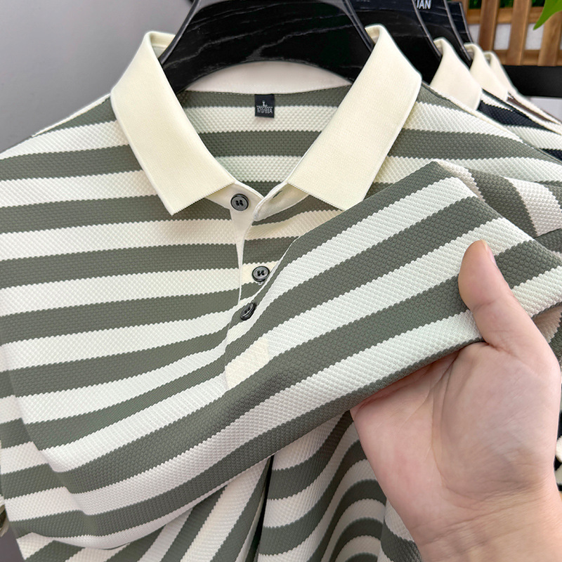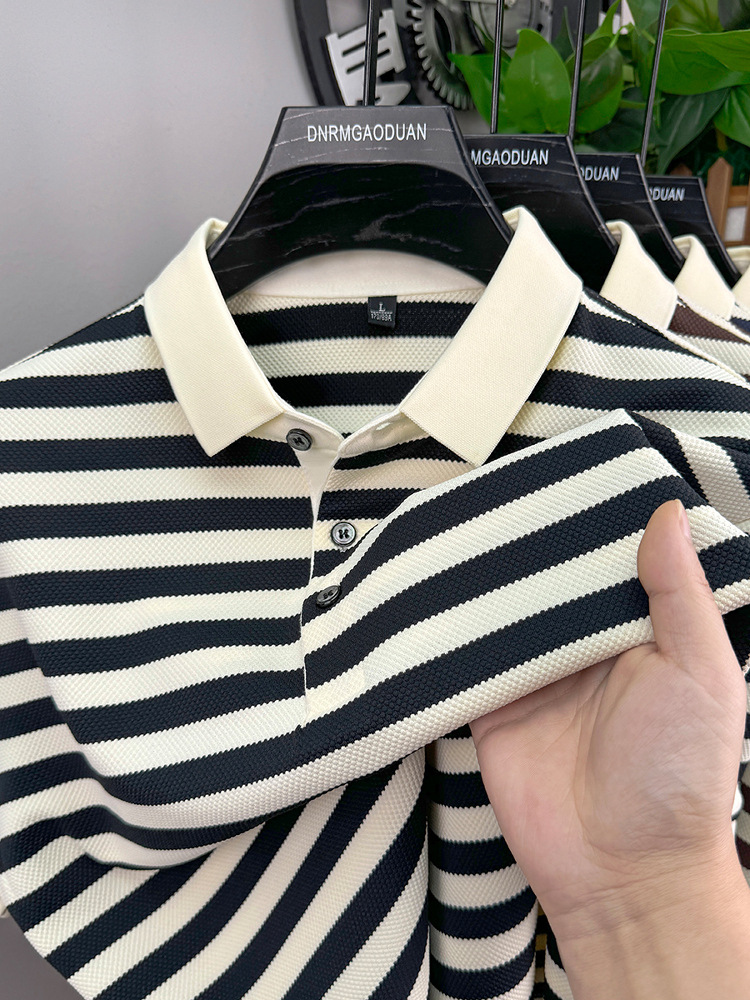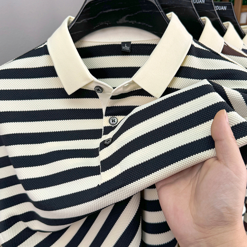 여름 새로운 도착 줄무늬 파인애플 옷깃 남자 반팔 폴로 셔츠 하이 엔드 라이트 럭셔리 캐주얼 루즈 올 매치 탑